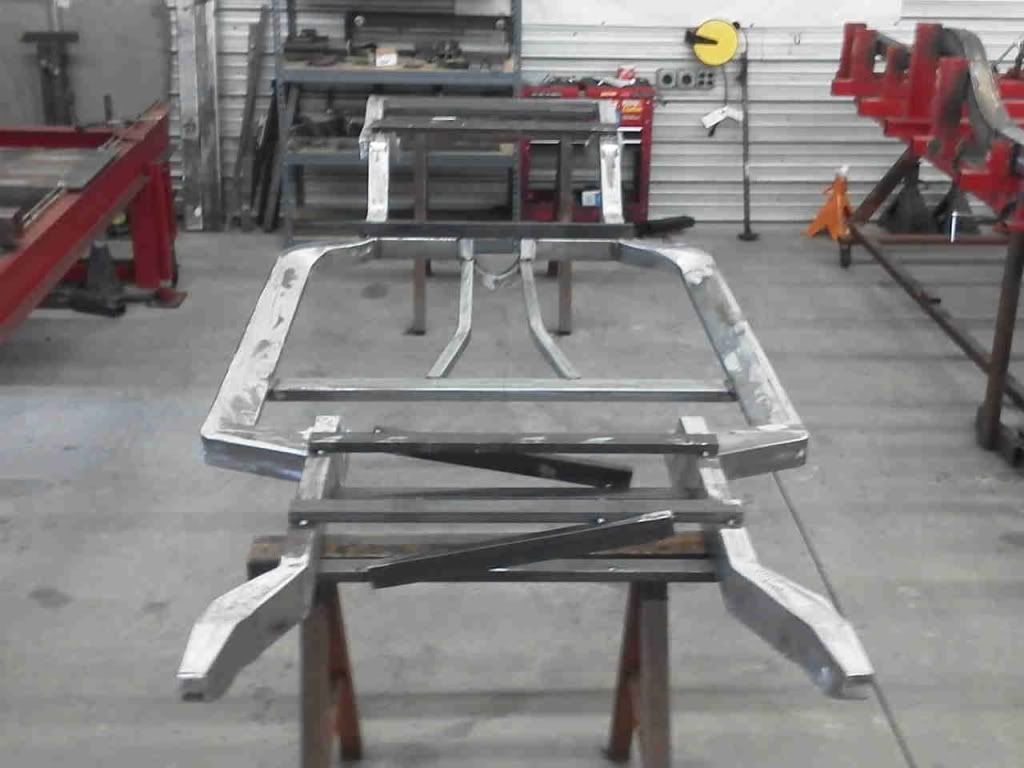 Not much of an update, but the frame is coming together slowly. Sorry for the grainy pics. Better pics coming later as frame progresses. Also, a pic of the rear billet spindles. The fronts were at the machine shop getting the steering arm cut off.