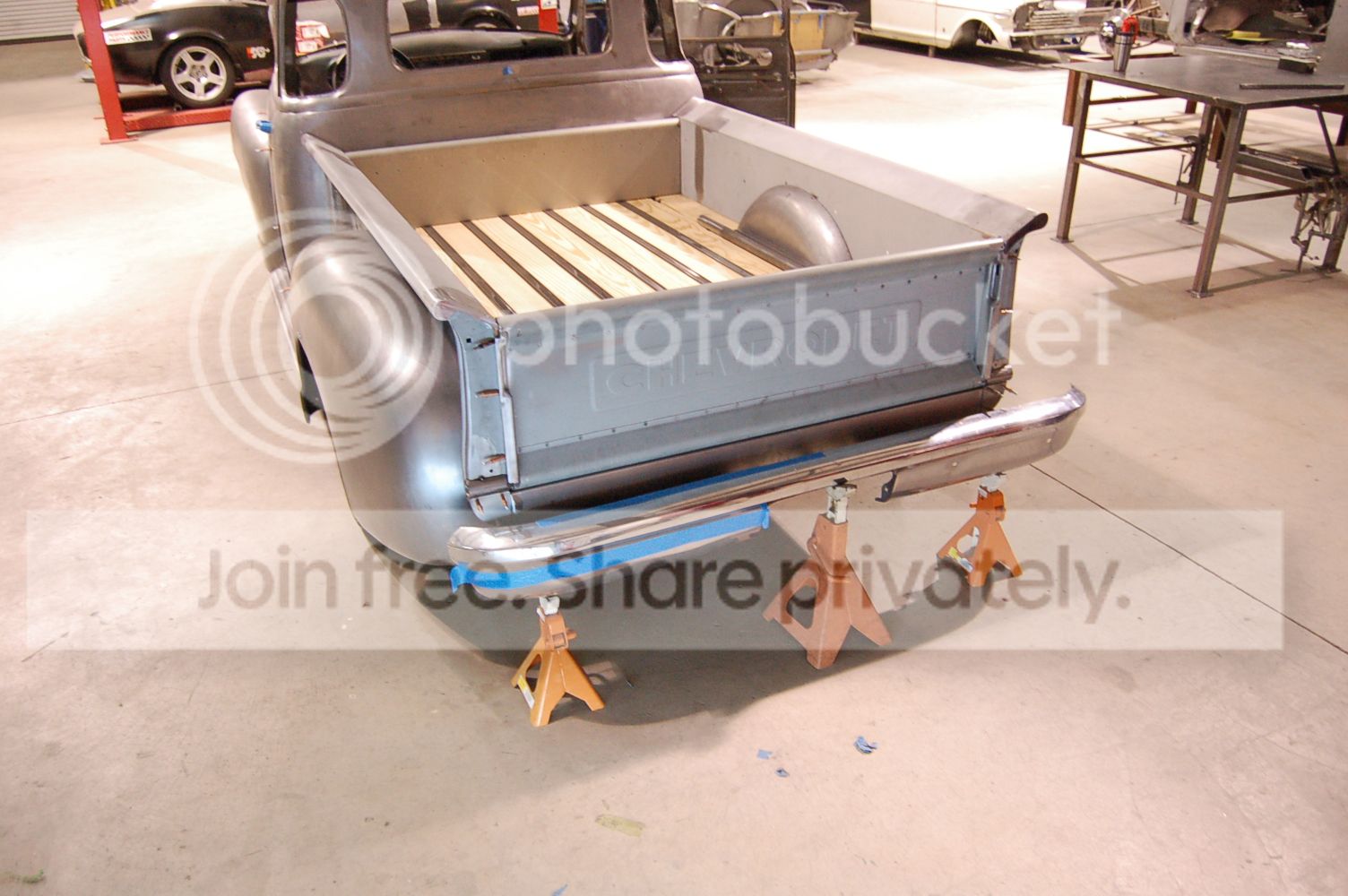 And the Truck. Man have we put some time in on this one also. Frank and Mary have allowed and encouraged us to go all out on this one. We are still on track to have it at SEMA later this year. We have been working on the details for few weeks. We installed some late model Chevy Latches, they work really nice. We narrowed the grille 1" on each side in a tapering fashion to loose some heaviness of the grille. That was alot of work. We hid all the bolts in the bed and made some clean little wheel tubs in the bed. We have been working with Tracy Weaver of Recovery Room on some interior stuff. The plan is to go to paint in July and interior in Sept. SEMA in November and go back to Del Mar with a truck with a bed floor for old times sake. http://i616.photobucket.com/albums/t...May2010008.jpg http://i616.photobucket.com/albums/t...May2010031.jpg http://i616.photobucket.com/albums/t...May2010007.jpg http://i616.photobucket.com/albums/t...May2010012.jpg http://i616.photobucket.com/albums/t...May2010004.jpg The rear bumper will be a modified unit off a 67 step side truck. It will look the part for the style of truck we are doing. We have been working on plans for the front bumper and it will probably have to be a completely scratch built unit to do what we want. |