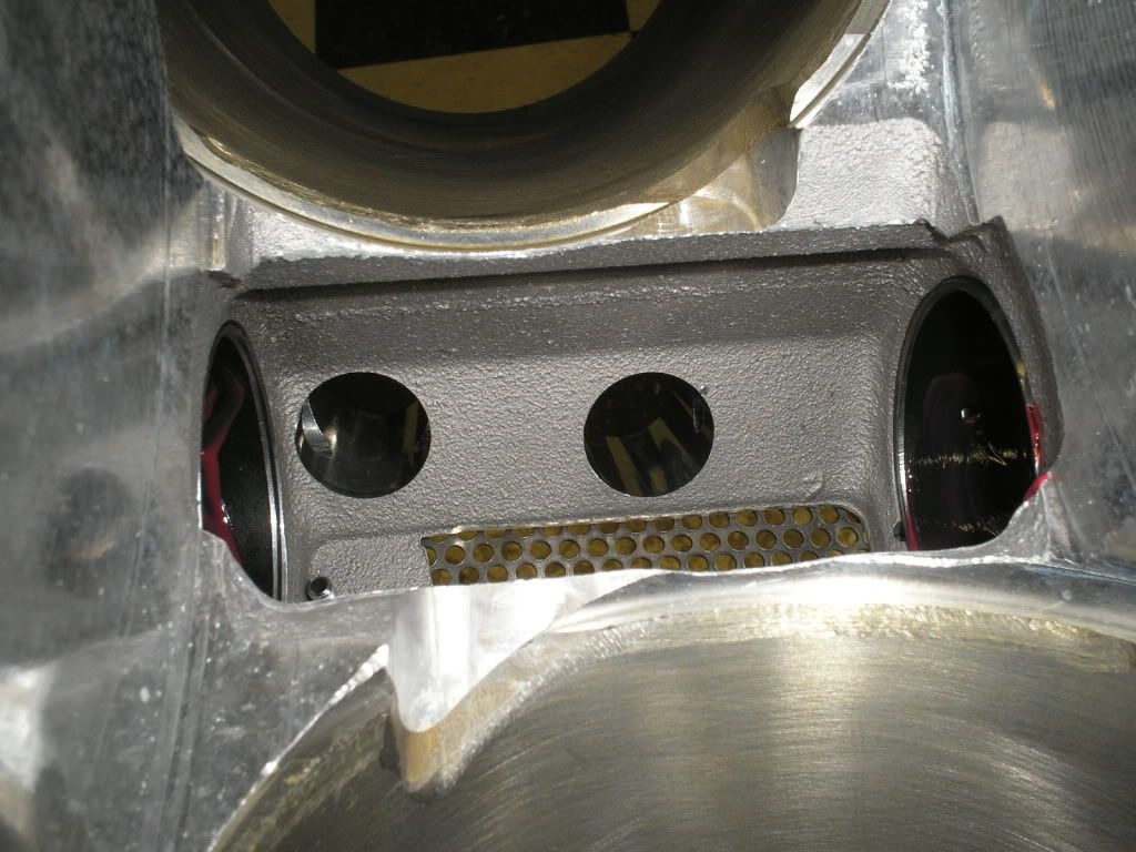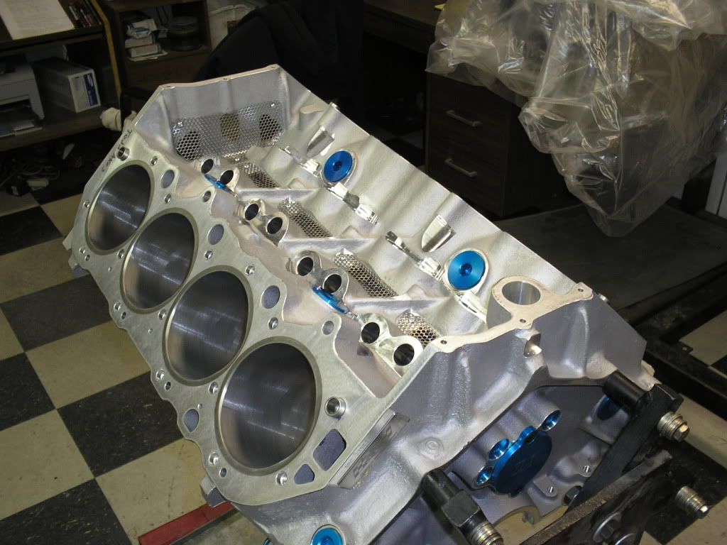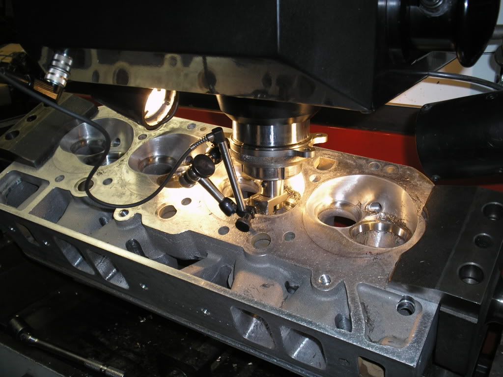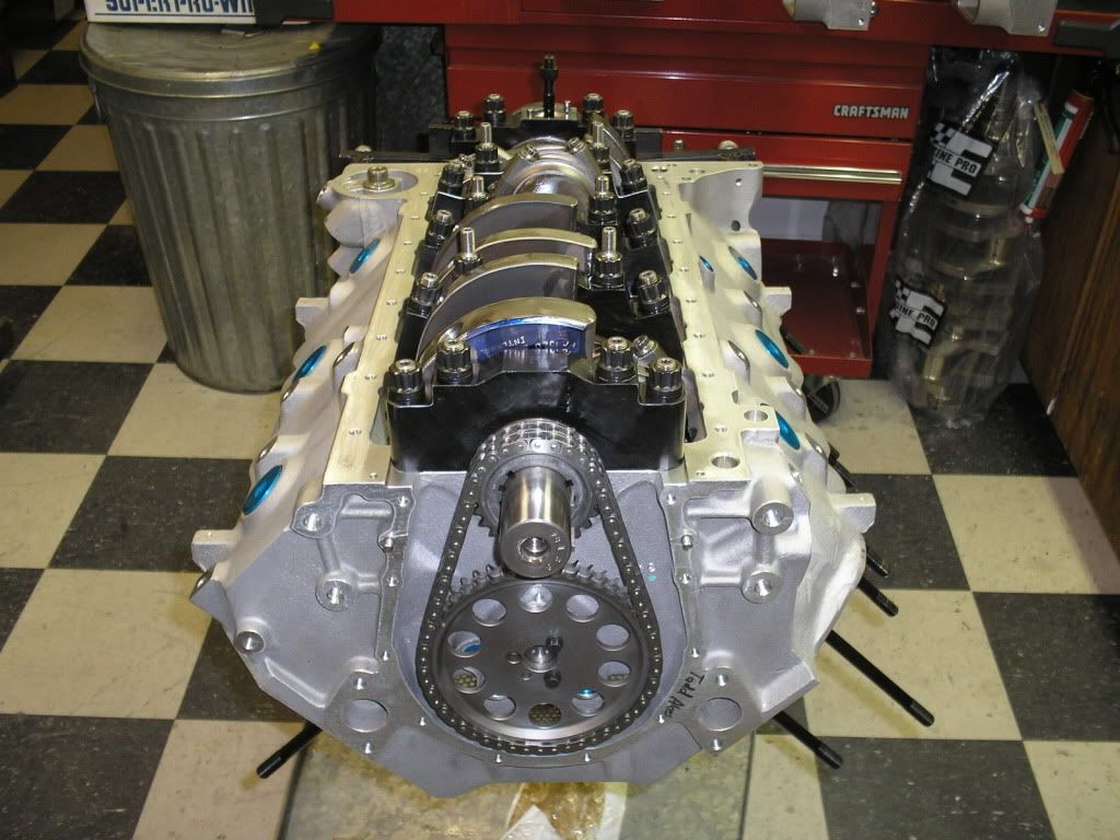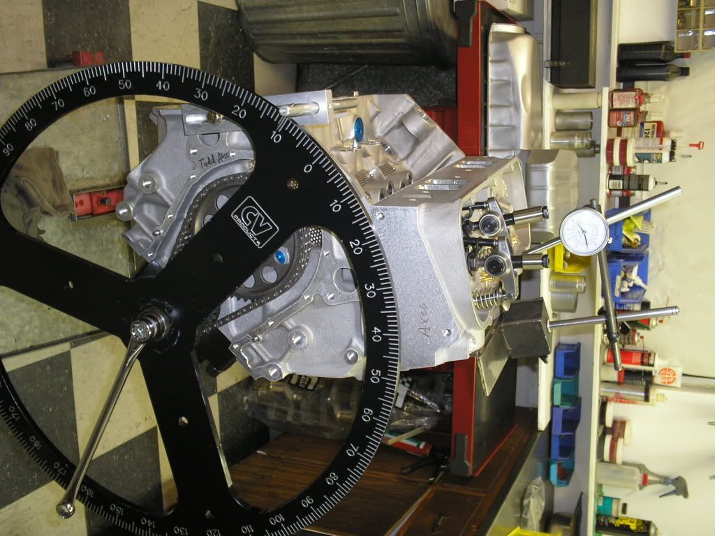 http://i200.photobucket.com/albums/a...llongblock.jpg Jason checking piston to valve clearance. http://i200.photobucket.com/albums/a...tontovalve.jpg Cool photo of the splayed main caps, callies crank , and manleys. http://i200.photobucket.com/albums/a...hortblock4.jpg Little trick, tiny ports in the oil gallies to cool the timing chain. With downard drivetrain slope and acceleration, think it's a great idea. http://i200.photobucket.com/albums/a...chainoiler.jpg Jason modifying my Isky Red Zones! My guess is more oil to cool the valve springs. http://i200.photobucket.com/albums/a...rainoilmod.jpg |