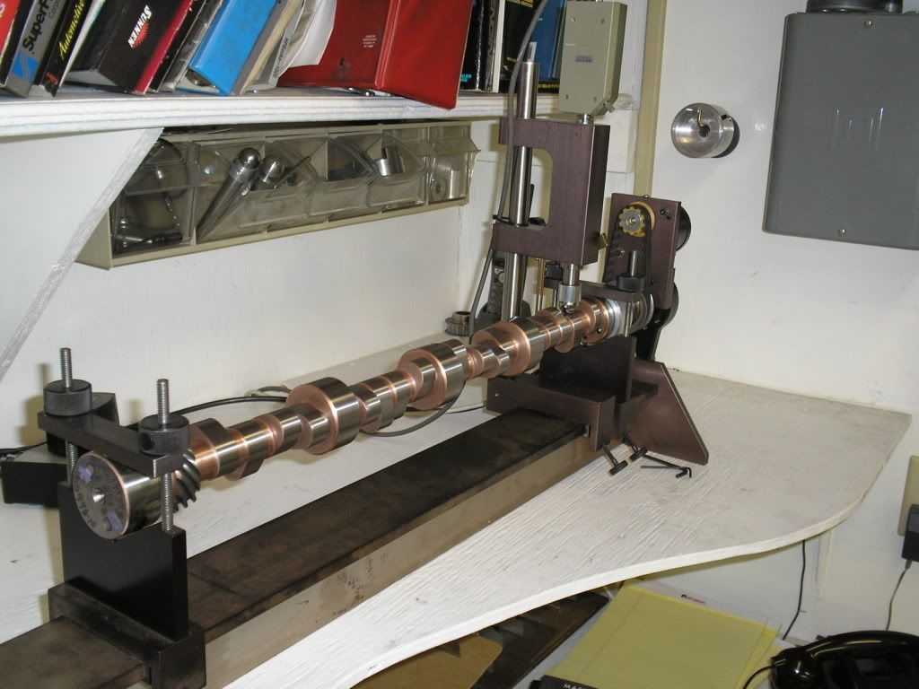 This photo shows the removed factory cam retainer bosses and custom valley screens. http://i200.photobucket.com/albums/a...9/P2020004.jpg Jason is checking the comp custom grind for accuracy. http://i200.photobucket.com/albums/a...zecamshaft.jpg Here he is checking chamber volume since he ported and cut the head for a valve job. It needed a significant shave to get the compression to 10.23:1. http://i200.photobucket.com/albums/a...umemeasure.jpg This photo shows the lathe work he performed to clear the Manley H beams. It also shows the preparation of the lifter bores. http://i200.photobucket.com/albums/a...dclearance.jpg |