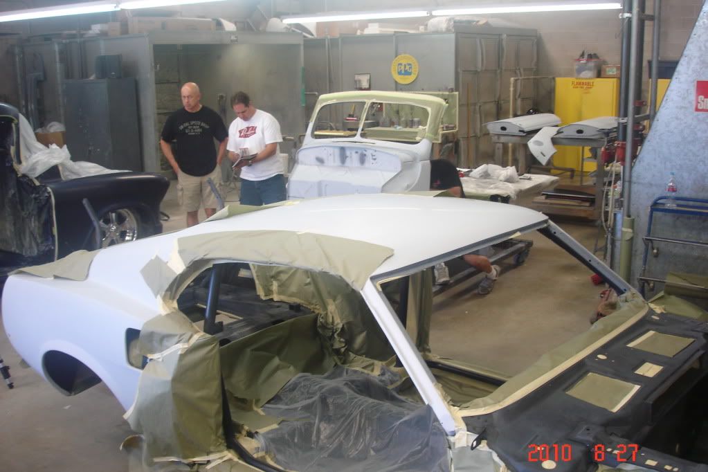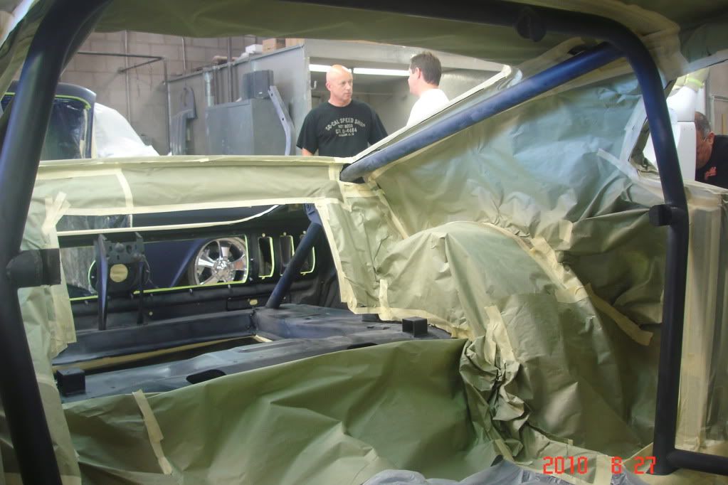 The car will be painted this week. Here are some recent pics at Mick's paint located at So. Cal Speed Shop. You can see Mick and Steve in the background trying to look important. http://i219.photobucket.com/albums/c...g/Aug30019.jpg http://i219.photobucket.com/albums/c...g/Aug30020.jpg Picture of the engine bay http://i219.photobucket.com/albums/c...g/Aug30016.jpg Look at how crisp the rear flare is. http://i219.photobucket.com/albums/c...g/Aug30031.jpg Scoop and widened quarter http://i219.photobucket.com/albums/c...g/Aug30030.jpg http://i219.photobucket.com/albums/c...g/Aug30027.jpg http://i219.photobucket.com/albums/c...g/Aug30026.jpg http://i219.photobucket.com/albums/c...g/Aug30029.jpg |