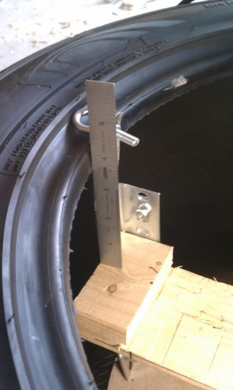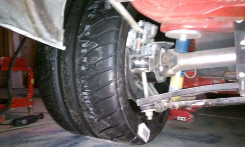 Wheres the beef? Its right here....285's & 345's. I built a jig to measure offset and position the tires where I want them. Tires will be mounted tomorrow, at the local Ferrari dealership of all places...Ill get some more pics once it rolls on new rubber. Next step it to wire the car, slow and painful!