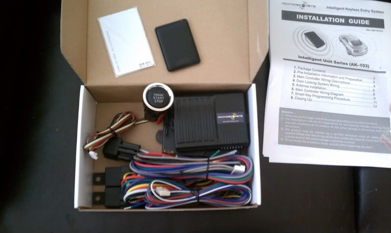I got some goodies in the mail. My keyless system from AdvancedKeys.com is pretty slick. You carry an active proxcard in your wallet. When you approach the car it will unlock itself and allow the ignition to be armed. Push the botton to start, system will crank the engine for you, another push and its off. Walk away and the car will lock itself. You never have to use a key and its more secure than a modern OEM system. If you notice, the door locks have been shaved in anticipation of this feature.