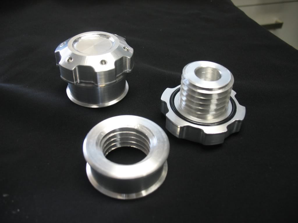 Some caps/weld bungs for a coolant tank and washer reservoir for the RS-V camaro. Matches the fuel cap. Still needs polishing and Cap screws to finish!