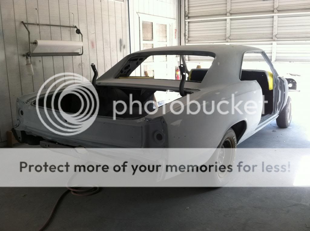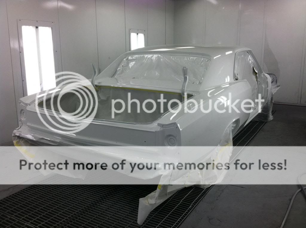 I walked in this morning to find a white Chevelle! Now it's time to let it sit for a week so it can shrink and move while we prep it again for the red coats. It's 90% there, but still so far away from coming home. Piece by piece.