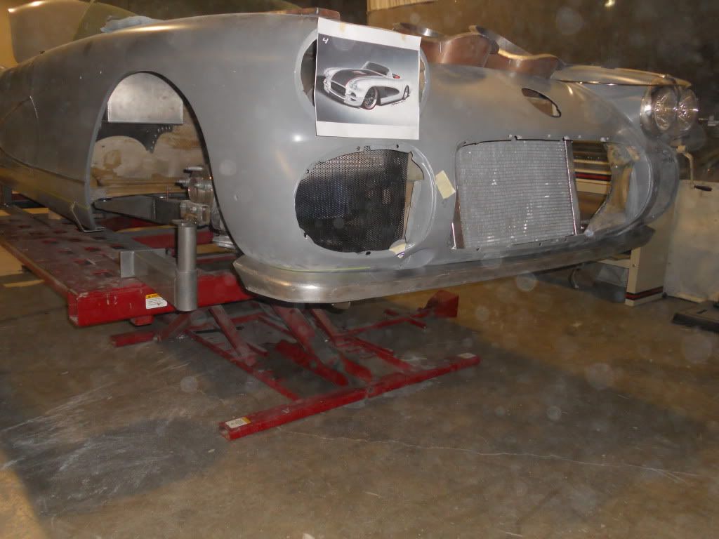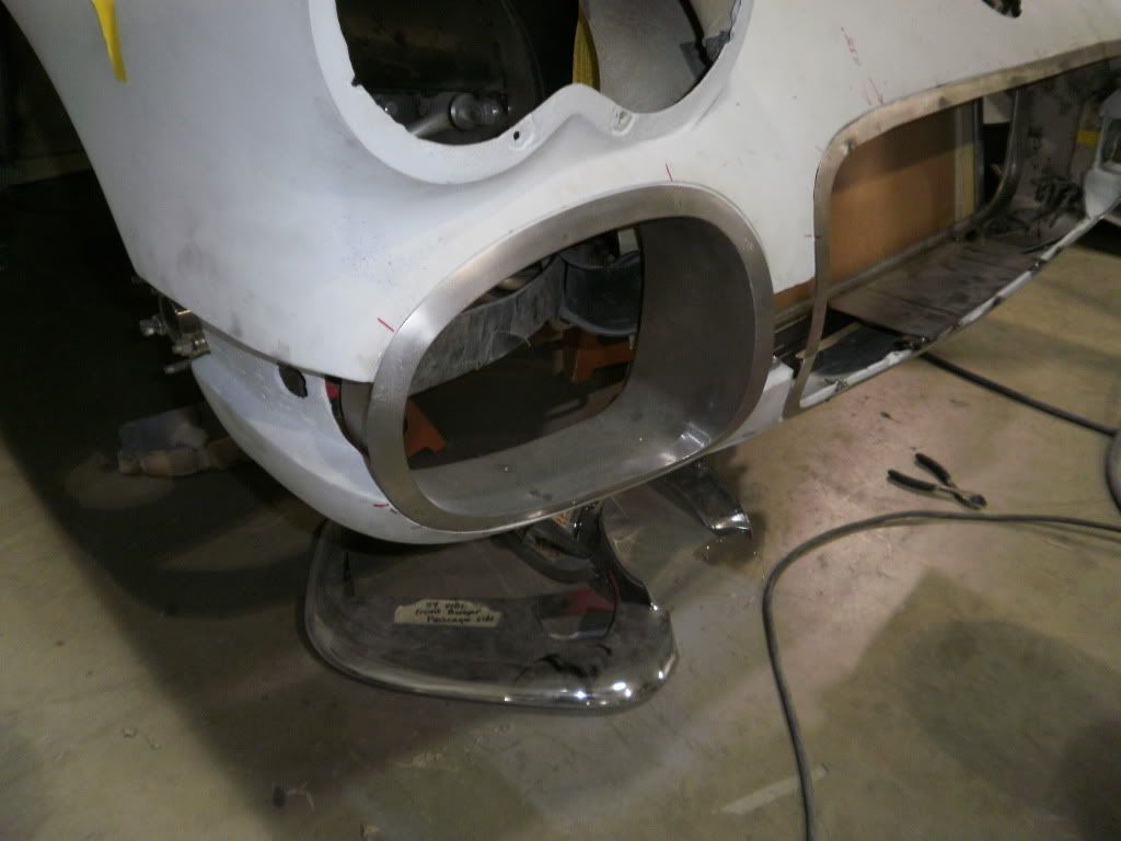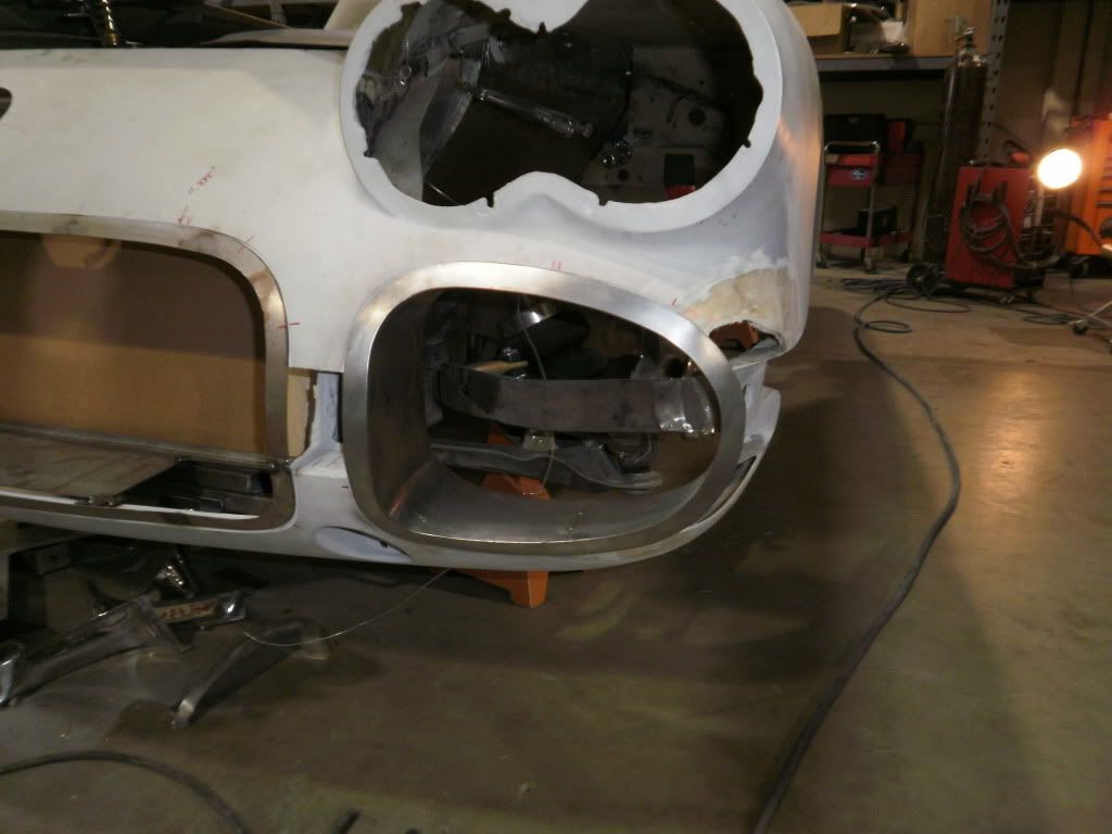 http://i1106.photobucket.com/albums/...orvette112.jpg We also made new grille openings. The front bumper originally used to fit inside the body and the rear sat on top of the body. I wanted the front and rear bumpers to fit the same, so that meant filling in the front fenders, making new grilles, and new front bumpers. |