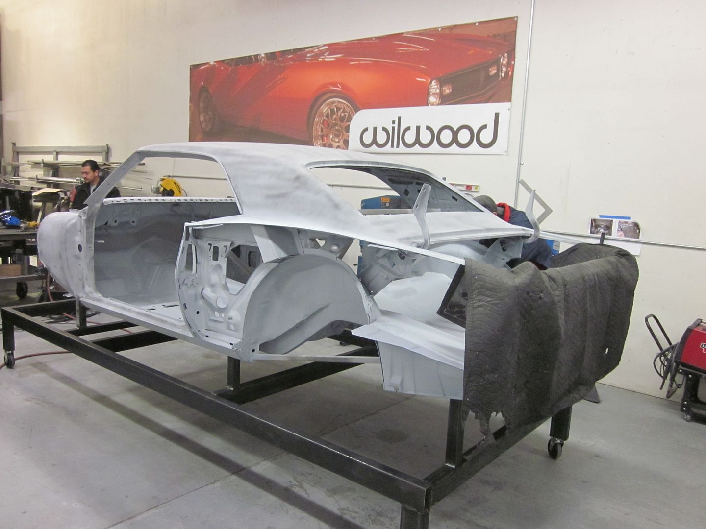 Finally got this 69 going.. The holidays put the car behind @ the media blaster .. & we have a bunch of stuff going on here @ the shop.. Got the shell in DTM primer.. Loaded on the jig.. Their will be updates coming here pretty soon.. We have 6 weeks of scheduled work time for this car..
