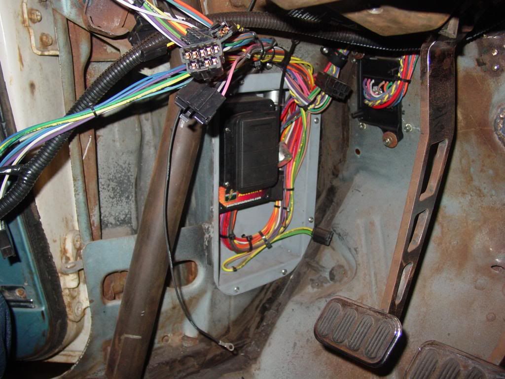 A view from the top. Steering column firewall mount. http://i43.photobucket.com/albums/e3...y99h/001-8.jpg http://i43.photobucket.com/albums/e3...y99h/010-8.jpg Inside view of column mount http://i43.photobucket.com/albums/e3...y99h/007-7.jpg http://i43.photobucket.com/albums/e3...y99h/009-7.jpg More of the A/C mounts. Easier to see with the dash back out http://i43.photobucket.com/albums/e3...y99h/008-7.jpg http://i43.photobucket.com/albums/e3...y99h/004-8.jpg Detroit Speed windshield wiper motor is mounted. Took a little time but it fits now. http://i43.photobucket.com/albums/e3...y99h/002-8.jpg http://i43.photobucket.com/albums/e3...y99h/003-8.jpg Dakota Digital outboard control module is mounted http://i43.photobucket.com/albums/e3...y99h/005-8.jpg Next is the American Autowire kit http://i43.photobucket.com/albums/e3...y99h/006-8.jpg I will have more in the next week or so |