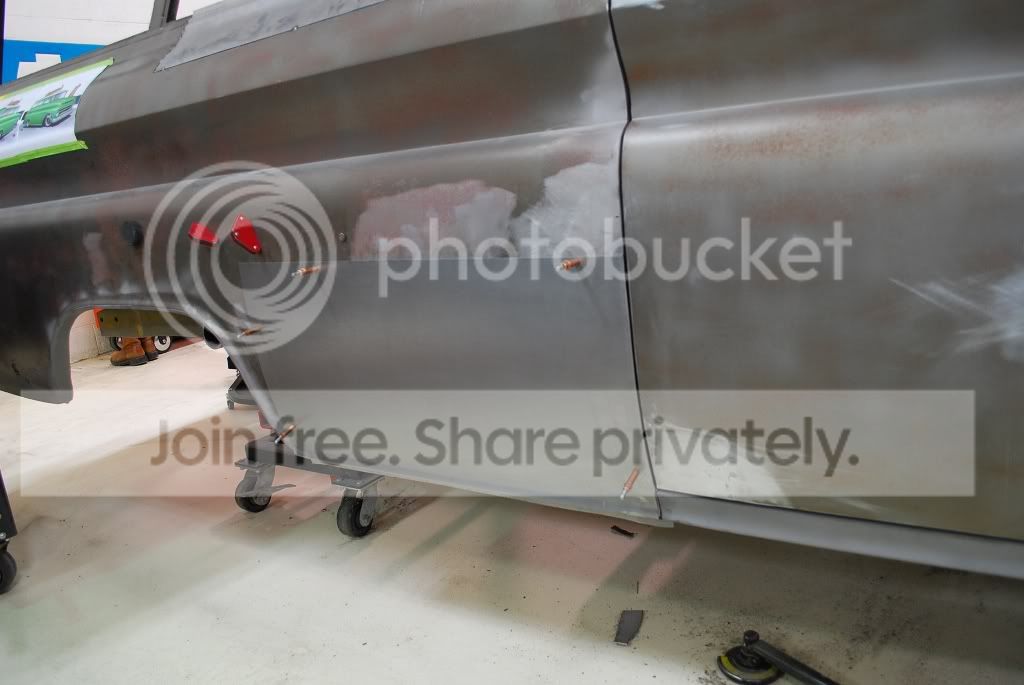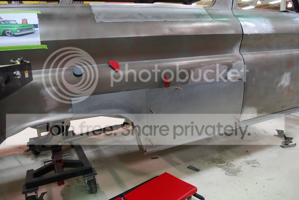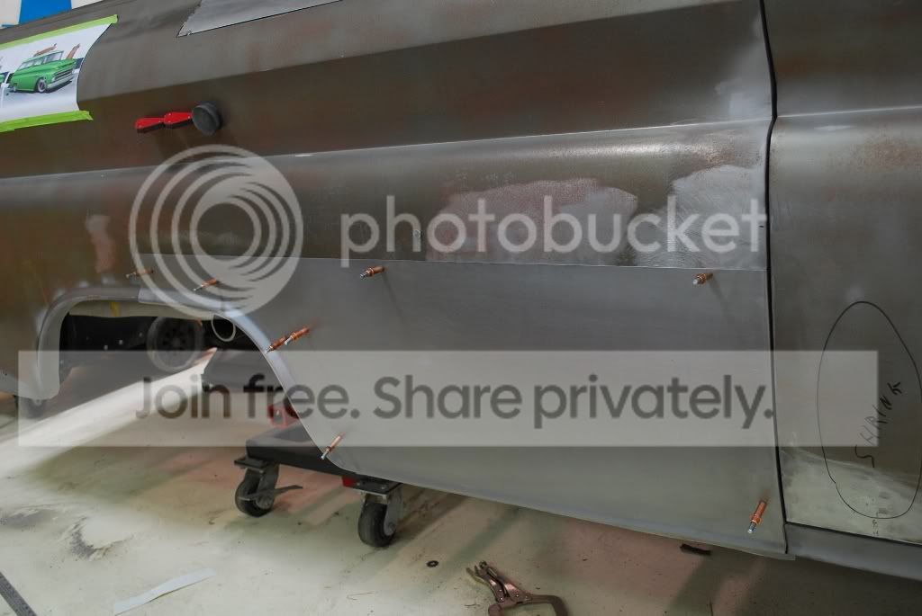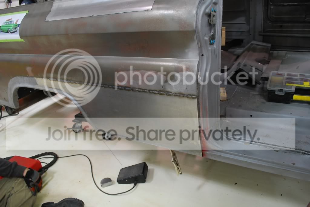 http://i563.photobucket.com/albums/s...ture221672.jpg The original panel next to the new panel. The new panel has the rear section of the original wheel opening attached to it. The center wheel opening portion of the new panel was lengthened to accommodate for the stretch in the wheel opening that we did on the other side of the truck. http://i563.photobucket.com/albums/s...ture221682.jpg http://i563.photobucket.com/albums/s...ture221685.jpg The new panel being welded in place. We should have it all metal finished out early Monday. http://i563.photobucket.com/albums/s...ture221700.jpg |
