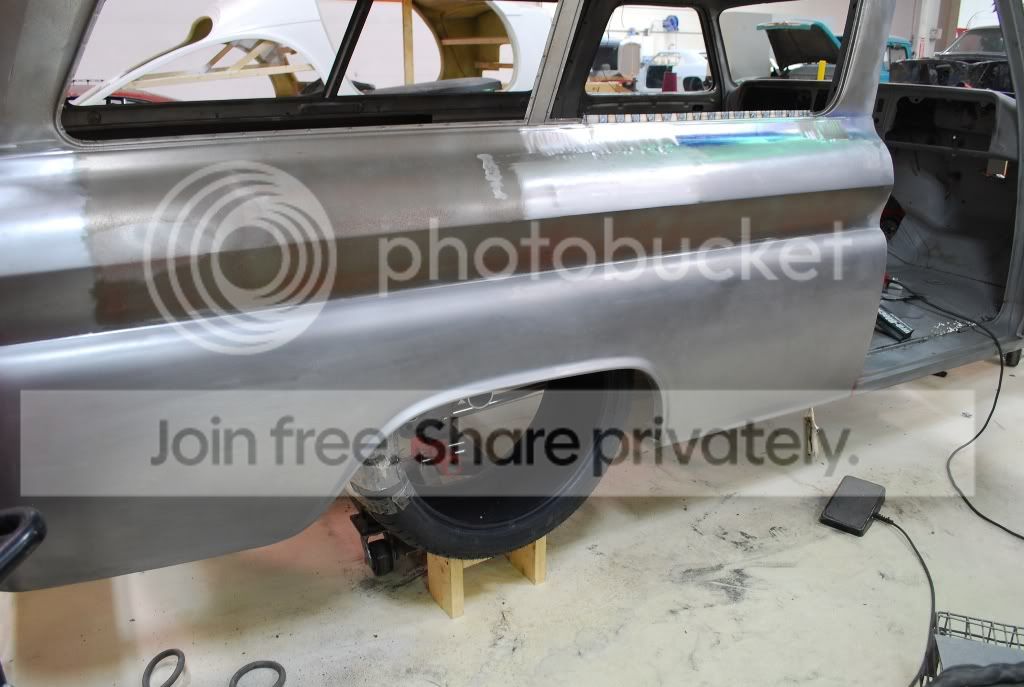 We are just about finished with the passenger side quarter panel as well. Here are a few shots along the way showing the progress.