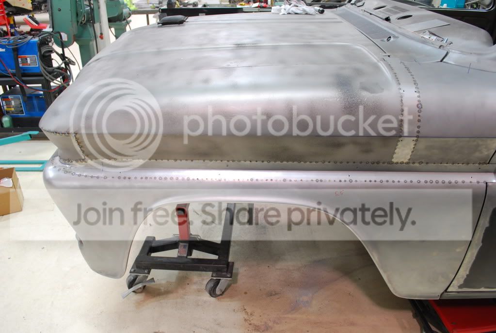 http://i563.photobucket.com/albums/s...ture221922.jpg http://i563.photobucket.com/albums/s...ture221924.jpg http://i563.photobucket.com/albums/s...ture221935.jpg http://i563.photobucket.com/albums/s...ture221957.jpg The center recess was then smoothed and holes were filled. The firewall was final welded and metal finished. I'll try to get a few pics of that next week when we can open the hood again. |