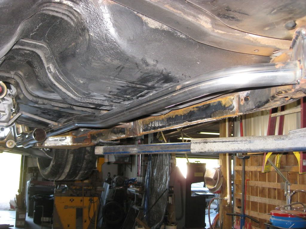Chassis bracing 2"X.120 wall round tube bent to follow the contour of the floor pan.http://i1104.photobucket.com/albums/...tanicII005.jpgAprox. ride height/before shock mount were built.http://i1104.photobucket.com/albums/...hevelle001.jpg