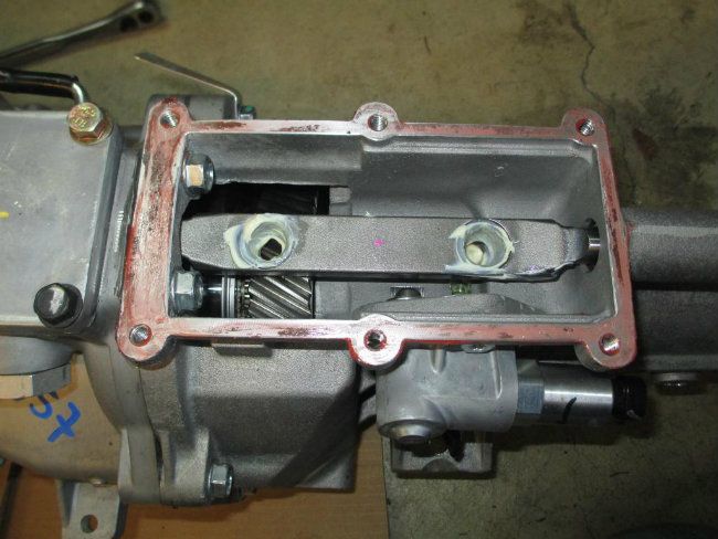 Now I can see how the aftermarket shifters that don't have any seals would leak oil. In the forward position the shifter is directly above the gear and would have a direct spray of oil. I'm suprised they would have designed and sold a shifter with no seal :headscratch: http://i1048.photobucket.com/albums/...ps1b562585.jpg Here is a shot of the Tremec shifter from underneath. This shifter has a nice designed oil seal. http://i1048.photobucket.com/albums/...psc2c609d4.jpg I went with the forward position so the shifter would fit through the console. http://i1048.photobucket.com/albums/...ps99c6c577.jpg |
