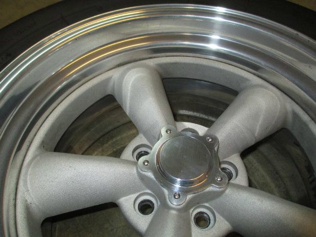 For cooling the engine I used a single electric fan setup and a Be Cool 28” x 18” aluminum two core radiator. The fan is a Ford Lincoln Mark 8 type with an output somewhere around 3,500 to 4,000 CFM. I used the original 69 Camaro fan shroud that came with my car, and fabricated an adaptor bracket to mount the electric fan inside the stock shroud. This set up worked great… I drove the car this past summer in 100+ degree weather in traffic and never had any issues with over-heating. The Ford electric fan has an S-blade design and is super quiet… very nice. The fan is triggered to turn on at a pre-set temperature programmed into the GM ECM. http://i1048.photobucket.com/albums/...psbef33471.jpg http://i1048.photobucket.com/albums/...pscdc19930.jpg http://i1048.photobucket.com/albums/...psd3bffba3.jpg For a side project I made some aluminum billet wheel centers for my Vintage Wheel Works V-45’s. I didn’t like the tall plastic ones that came with the wheels. http://i1048.photobucket.com/albums/...ps5ae46265.jpg http://i1048.photobucket.com/albums/...pse46f4605.jpg I used stainless steel fasteners to attach the wheel centers... they need a little more polishing. http://i1048.photobucket.com/albums/...psdf29d6a5.jpg |
