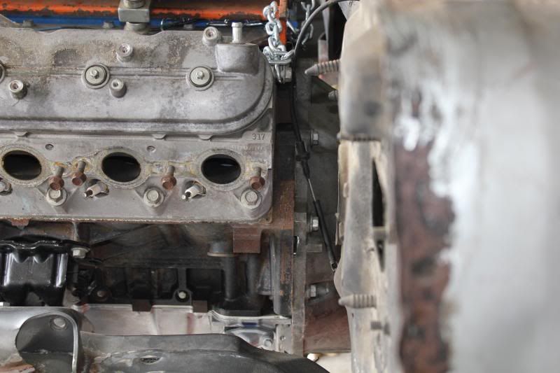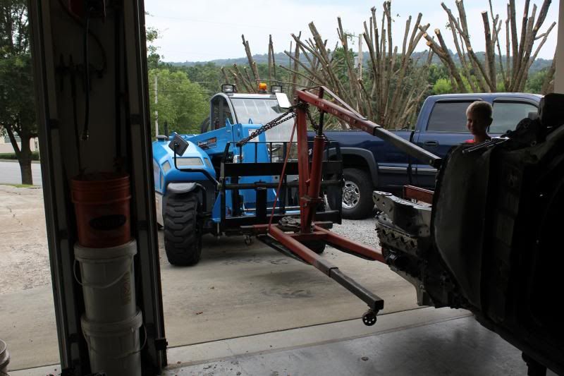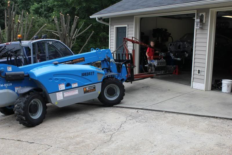 Well, like I said, I got the engine at least set in the frame. Had a rather unique tool that I used, as the frame was set a little closer to the door than I had planned.