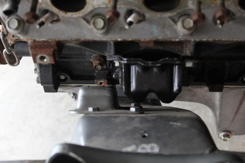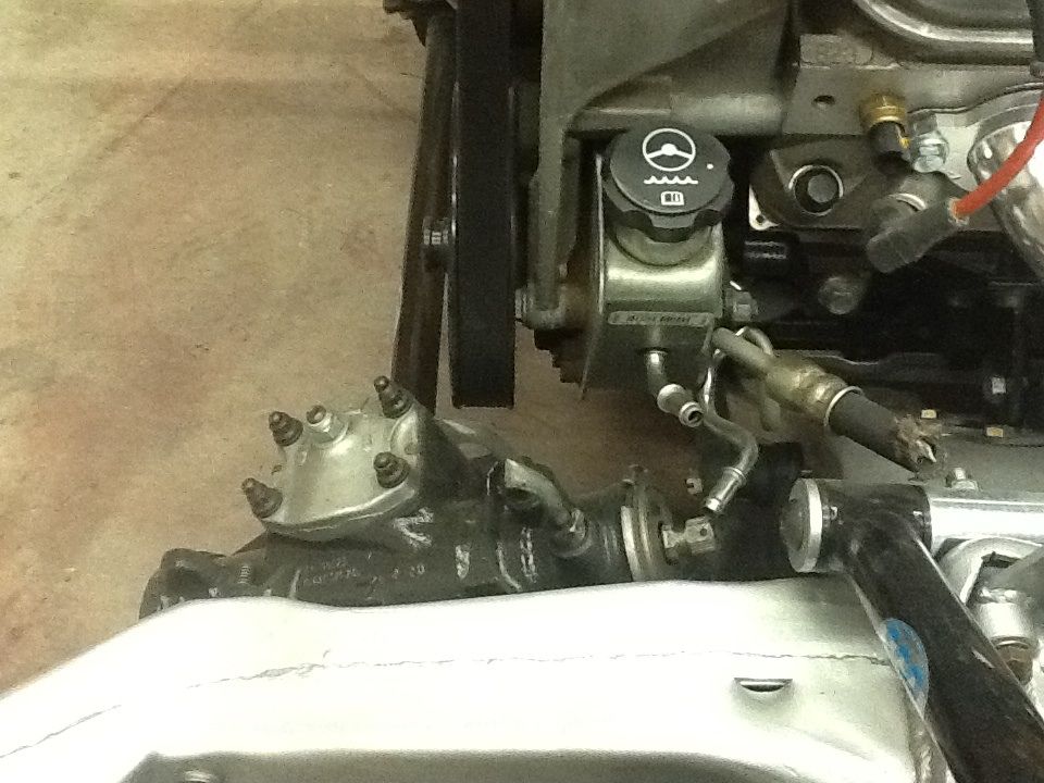Here's a pic of the steering box clearance. I basically set mine back as far as possible during mockup. Of course I had my headers installed, and I put the steering box on, to make sure all my stuff was covered. Having your oil pan on will be mandatory to ensure your golden on fitment. I'm using the Holley pan. It's about 1/4" off the top of the crossmember, and I also have a ton of clearance on the sump of the pan to the crossmember. I researched this a lot. Some people reported that they had to raise the engine, in order to get tie rod to pan clearance. My engine is as low in the car, and as far back in the car as possible with a stock firewall, and I have no problems anywhere.