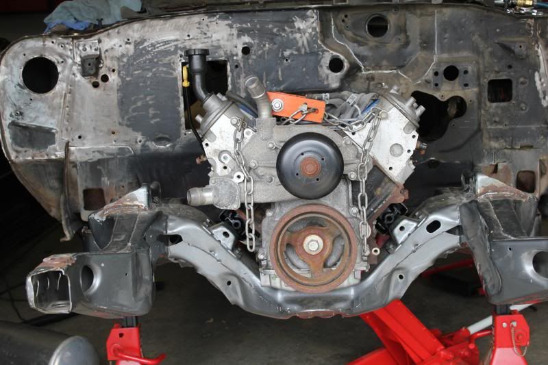 Anyway, I had rented this for another project here at the house, and thought I would seize this time to use it. http://i115.photobucket.com/albums/n...ps5b4fa02d.jpg http://i115.photobucket.com/albums/n...psb6914e30.jpg http://i115.photobucket.com/albums/n...ps257a6afc.jpg So this is the outcome of the event. Rather painless in setting it in. As you can see it is jut resting on the pan and the trans has the mount in. I am playing with the idea of using Camaro mounts so you can see them next to the stock Chevelle towers. I will need to see what I can do on this. I think engine setback is good, let me know if I am wrong here guys. Let me know if there are any other pic that are needed to make that decision. http://i115.photobucket.com/albums/n...ps9fc51c50.jpg http://i115.photobucket.com/albums/n...ps875cd709.jpg http://i115.photobucket.com/albums/n...psec4f126b.jpg http://i115.photobucket.com/albums/n...ps2c34cb48.jpg http://i115.photobucket.com/albums/n...ps0c314d7d.jpg HEEP |