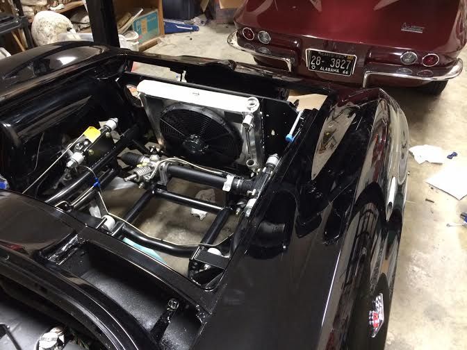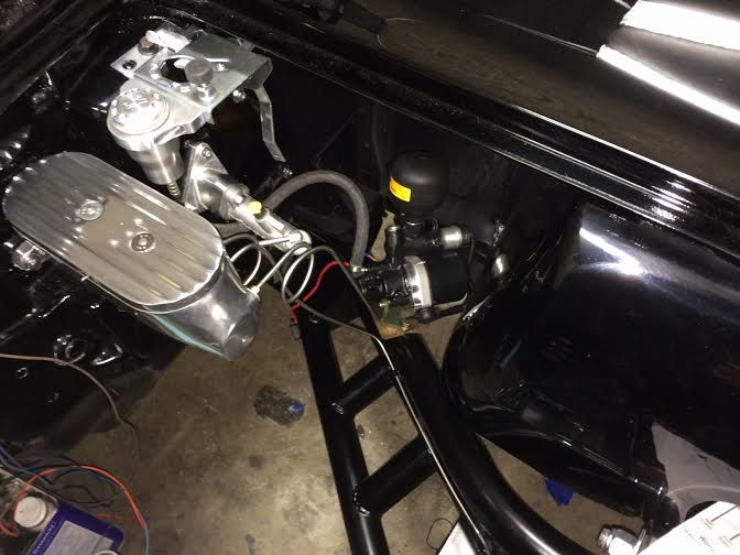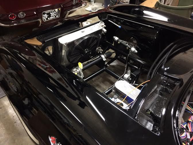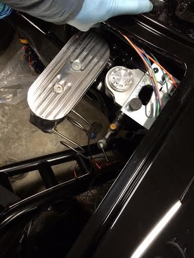 http://i852.photobucket.com/albums/a...psb808e75f.jpg Electrical control box fit best on the passenger fender apron. This was the fuses can still be accessed. There is zero room left inside the car. http://i852.photobucket.com/albums/a...psb7fc7783.jpg The GM control pack harness comes with relays to power the fuel pump and electrical fan. It turns the fan on at 190F http://i852.photobucket.com/albums/a...ps680c9d17.jpg Another extra benefit of the GM control pack is that the electrical box has extra power ports. Mounting it near the electric brake booster came in handy...now i can just run the wire from the booster straight up to the spare terminal on the electrical box. http://i852.photobucket.com/albums/a...ps7bc7c285.jpg I searched the internet for quite some time looking for a pedal mount for the GM pedal that would work on a C2 Corvette. The mount that comes with the kit doesn't line up well with the firewall and if you use it, you must weld long spacers to the back of it and it still wont line up well due to the e-brake assembly. I found this Pedal Mount bracket from a company called Samburg Performance. It is made for a mazda or rx7 conversion, but worked well for the Corvette once modified. Here is the link http://www.rx7v8.com/product/fd-driv...e-pedal-mount/ I simply cut the mount in half where i felt was the best location, overlapped and lowered the mount, then welded it back together. I could have cut out the unused portion, but overlapping the two pieces will make for a much stronger bracket. I find it easier to just buy a bracket and modify it rather than spending hours making my own. It took me about 20 minutes to cut and reweld the bracket. http://i852.photobucket.com/albums/a...psa2c104ac.jpg Welded back together. http://i852.photobucket.com/albums/a...psead2e38f.jpg http://i852.photobucket.com/albums/a...ps8d31da3a.jpg I'm most likely going to use an electric e brake, but i mounted an older unit i had sitting around so y'all can see just how close the e brake will be to the pedal. It's tough to run the stock e brake handle with a drive by wire pedal. http://i852.photobucket.com/albums/a...ps6f5dbb5d.jpg And the calipers are now on and the car will soon have operational brakes! I had to mount these today to take measurements for the wheels. http://i852.photobucket.com/albums/a...ps19778fcb.jpg |