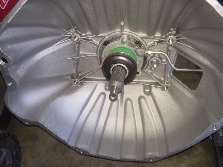 Prepping the TKO 5 speed conversion for install. I removed the bearing retainer, retrieved the bearing race from it, and installed the new bearing retainer and hydraulic throw out bearing.