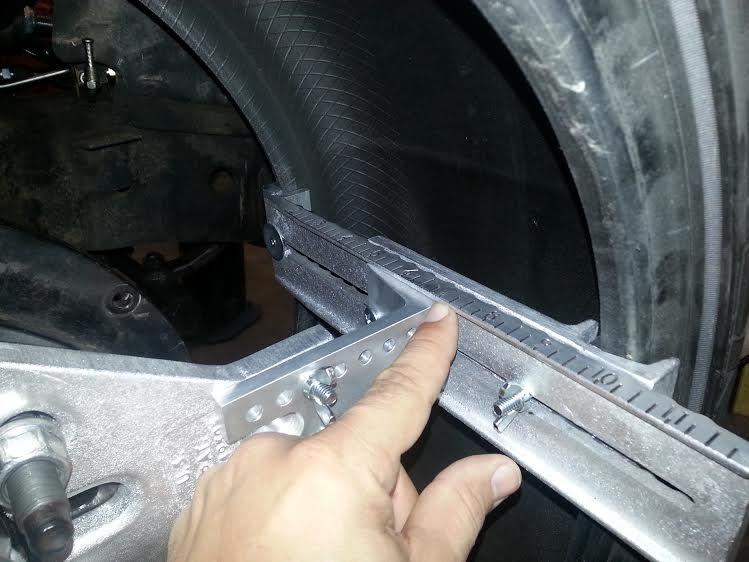 It's simple to do. . .just remove the spring from the coil over, bolt the shock back in, and use a jack to stroke the suspension. I STRONGLY suggest anyone trying to fit the largest wheel/tire under their car buy a GOOD measuring tool. The one in the pic is about $400. Sounds pricey, but what's Forgeline charge to change a wheel that doesn't fit your car? |