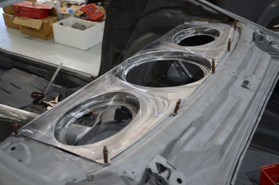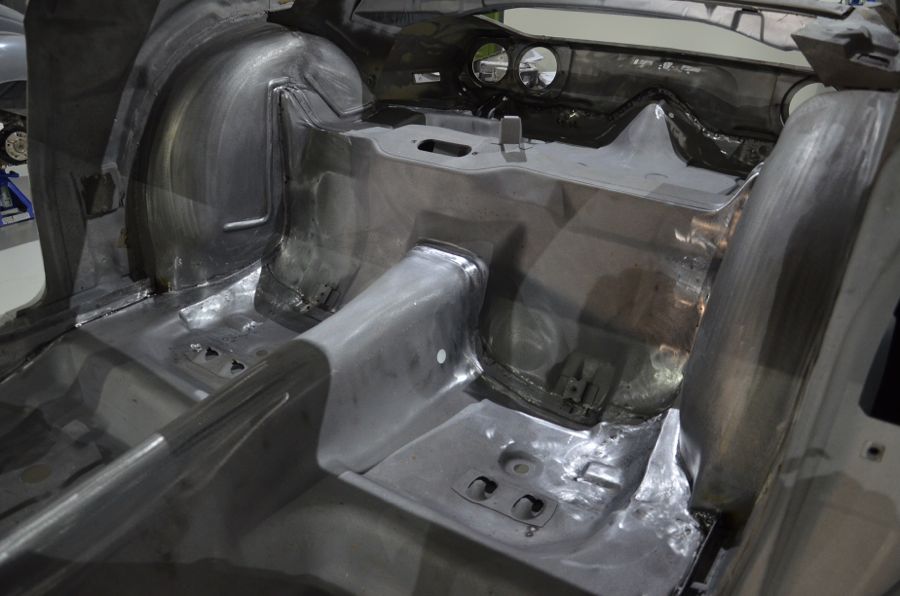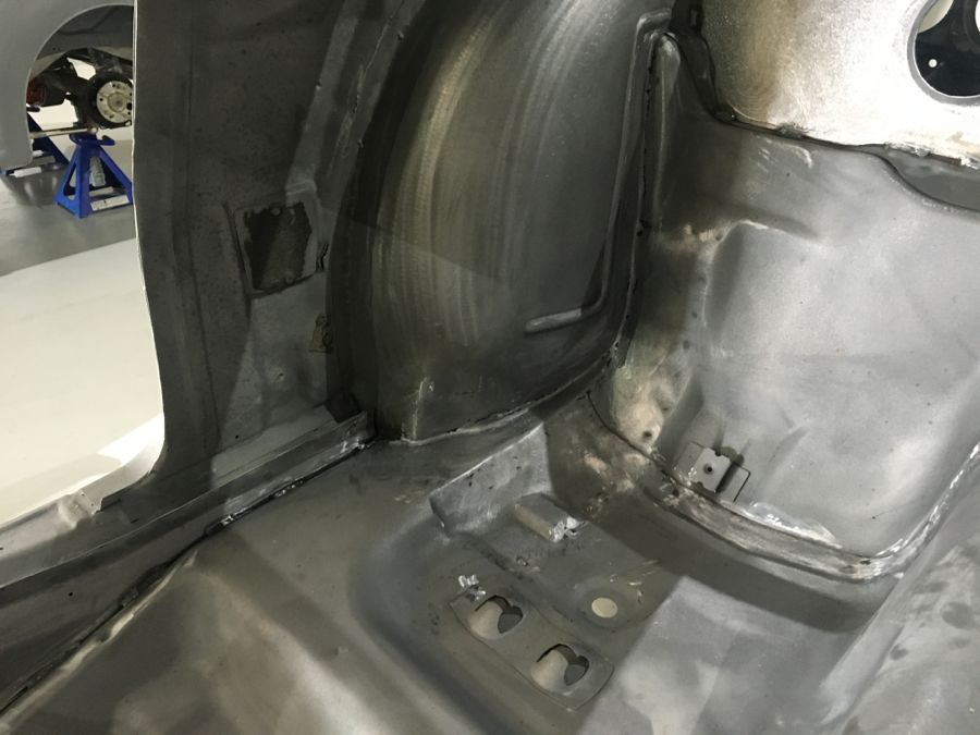 Some pics of progress, new full floor installed with new frame rails and parcel shelf.