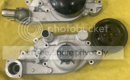 The Pulley broke off the water pump......... Hummmm !!!!.........https://hosting.photobucket.com/imag...=278&crop=fill I called Mark Stielow and sent him a picture and asked him if he had ever seen this before........ He asked me what car that was off of and I told him the Impala......Then he Educates me on the Edelbrock single belt drive set-up..... He explained that all the torque of turning the supercharger is transfered to the belt wrap around the water pump pulley....... Once he told me that it made perfect sense...... Then I wondered why Edelbrock didn't have any reference to this in their instructions...... So..... I go on their website and I see they are now selling a replacement pump with heavy duty bearings and a Flanged pump shaft with a bolt on Billet Pulley..... https://hosting.photobucket.com/imag...=278&crop=fill So... I told Mark about the pump and said I ordered one..... Then he tells me the same pressure was put thru the Power Steering Pump and I should order one of the TurnOne Power Steering Pumps that are designed to absorb the pressure ..... Put all the new stuff on and I now have the confidence to drive the car across the country again........LOL |