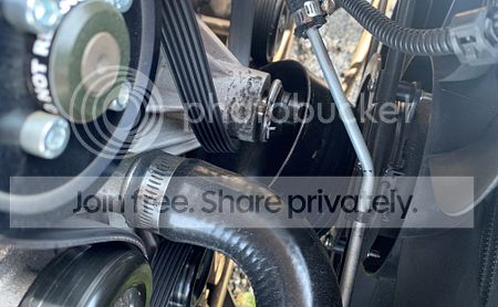A little late for the rest of the Story....... But better late than never as this might help somebody else in this situation......So.... After installing the Edelbrock Supercharger, I put 15,000 trouble free miles on the car...even with only 6 lbs of boost the car was a ball to drive with the added Torque........So... In July of last year we were driving to Des Moines, Iowa for the Good-Guys show......I was driving on I-80 around 80 MPH and all of a sudden I lose power steering and the engine went into Limp home mode.......WTF...... I coast over to the side of the Highway and open the hood......Here's what I seehttps://hosting.photobucket.com/imag...=278&crop=fill