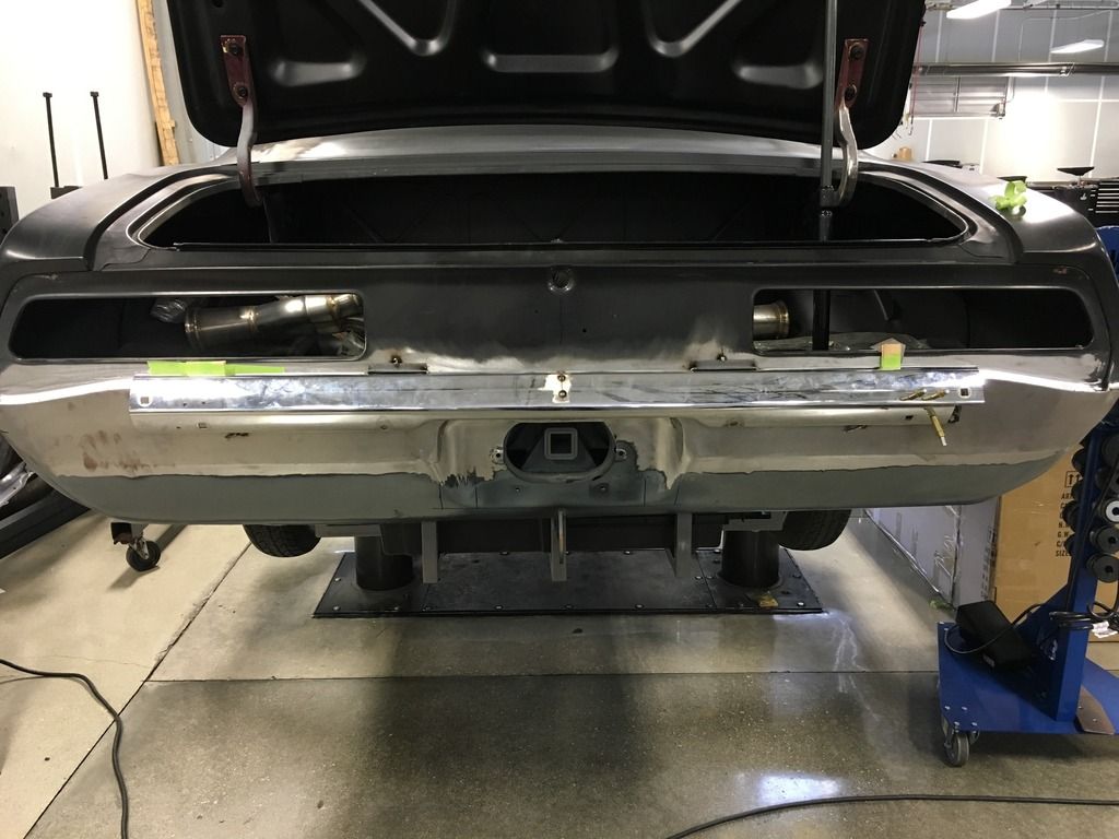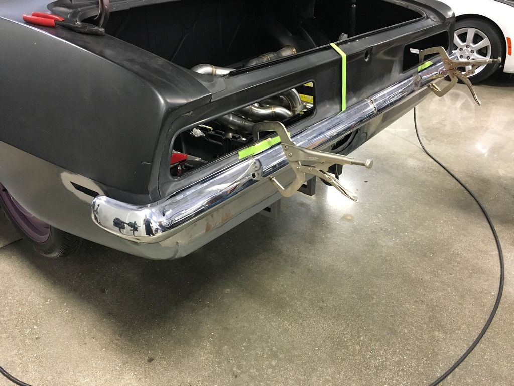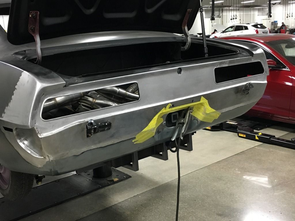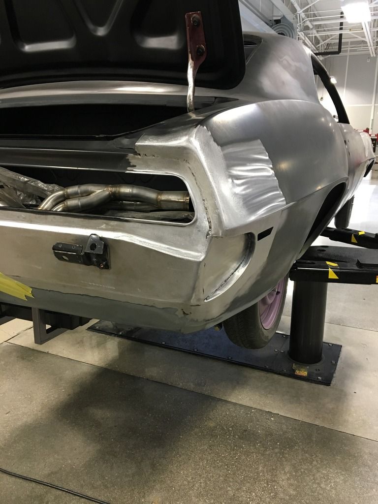 I got a lot done Friday night. Finished the right bumper recess then moved onto other tasks. I cut the seams for both quarters to tail panel then hammer and dollied the area to fit better then it was. After I was happy with the fitment I welded the seams for a cleaner look. http://i25.photobucket.com/albums/c8.../image_98.jpeg http://i25.photobucket.com/albums/c8.../image_97.jpeg http://i25.photobucket.com/albums/c8...image_100.jpeg I also filled the factory emblem holes then hammer and dollied the area and metal finished it. http://i25.photobucket.com/albums/c8.../image_99.jpeg Saturday I wasn't feeling like working on the car, but I got the Ring Brothers trunk hinges mounted so I could start fitting the deck lit to fix the gaps. Sorry, I forgot to get a picture. I also added some safety to the car in the form of a C6 3rd brake lamp. Lots of measuring, remeasuring, cutting, hand filing, and hand sanding. I'm pretty happy with how it came out though. http://i25.photobucket.com/albums/c8...image_101.jpeg http://i25.photobucket.com/albums/c8...image_102.jpeg |