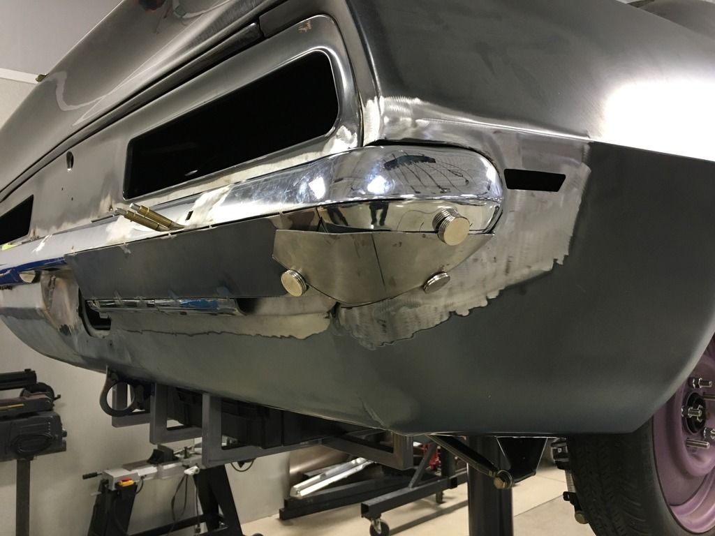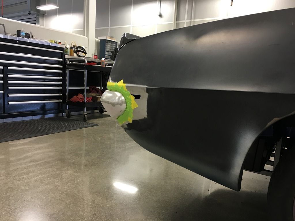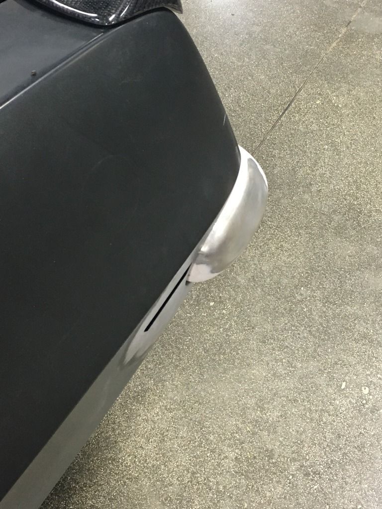 I've been working on this rear bumper trying to get it how I want it. I'm close now, just needs a few tweaks on the driver side then I'll be happy. I wasn't too concerned with getting the metal work perfect as I'm going to make a mold from this and do it in carbon fiber.