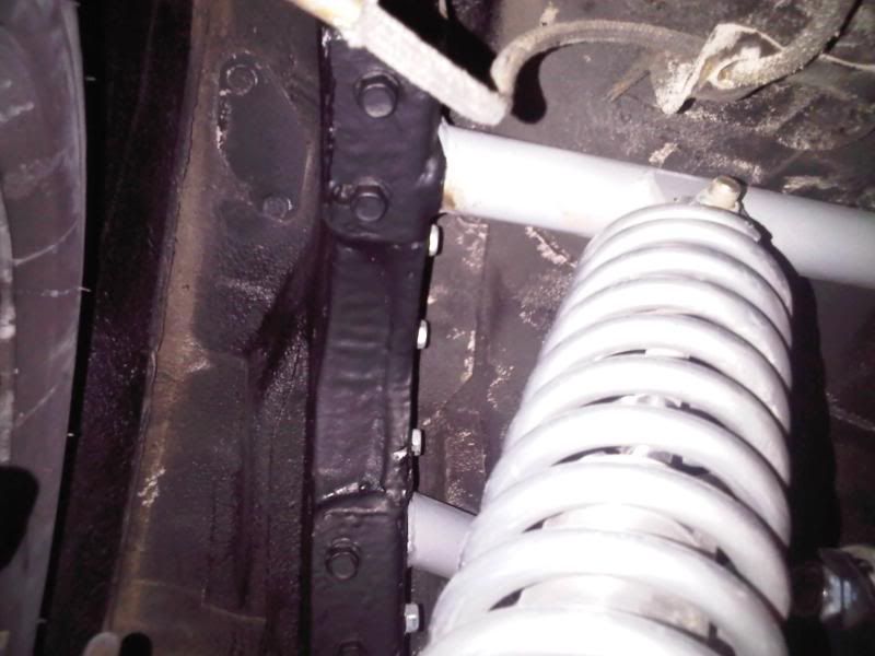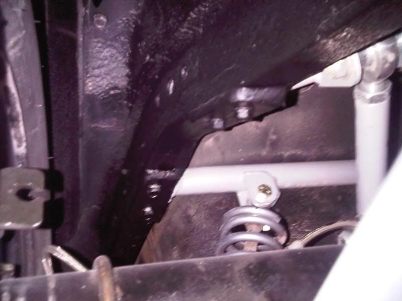 Put the car up on the hoist prior to final prep to deal with some rocker dents that the car had. While it was up in the air I had the 4 link welded in place. I never was super confident in having the cradle just bolted in place....especially if the car is getting more power. :thumbsup: