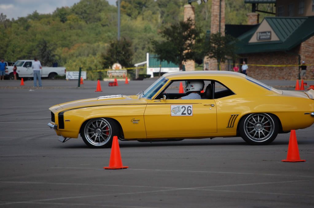 Got them back on the car and went down on spring rate to 550 front and 325 rear. It was a night and day difference in the car. I am running them in the middle setting and my 69 rides better than my wife's M3. What a difference the correct shock makes. I did make RTTH but had only put 5 miles on the car before it hit the parking lot for the autocross school that I had signed up for at the event. I was getting use to the car and was getting faster every run I made. It was a little tight and I had a small mechanical issue the first day. I had Danny Pop make a 2 laps for his feedback. 2nd lap in my car that he has never driven knocked 2 seconds off of my best run. The car is capable, the driver is not. Fixed the small problem, raised the watts one hole to free the car up and aired the tires down to 28 psi hot for the next day. Again every run I got faster and ended up running 12th out of 86 cars and missed the top 10 by .4x. A little more time getting use to the car and would have like to try some shock settings, I think I could have gotten there. All in all a completely different car with the torque arm, shocks and new/better tires. My hat is off to Dan and his wonderful fab work and a well thought out rear suspension design from Jake. http://i1138.photobucket.com/albums/...ics-221-X2.jpg http://i1138.photobucket.com/albums/...ics-230-X2.jpg |
