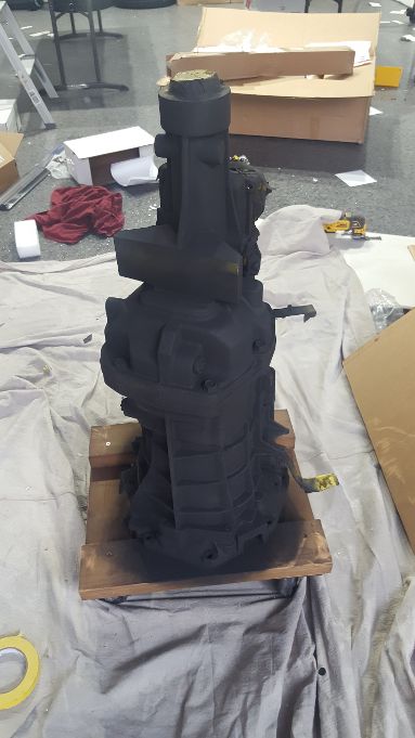My plan is to paint the transmission this weekend after I debur some of the sharp casting edges. My undercarriage is raptor lined in gloss black and all of my suspension components are satin black. I was thinking either satin black or chevy orange to match the engine.