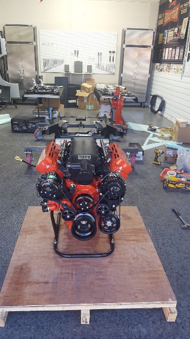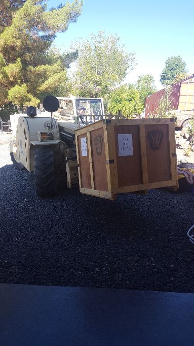 I like having friends with cool things. My buddy came over with his forklift and moved my engine from my house garage to my detached garage where it will meet up with the Extreme Subframe which I just got back from powder coat. It's gettin' serious now.