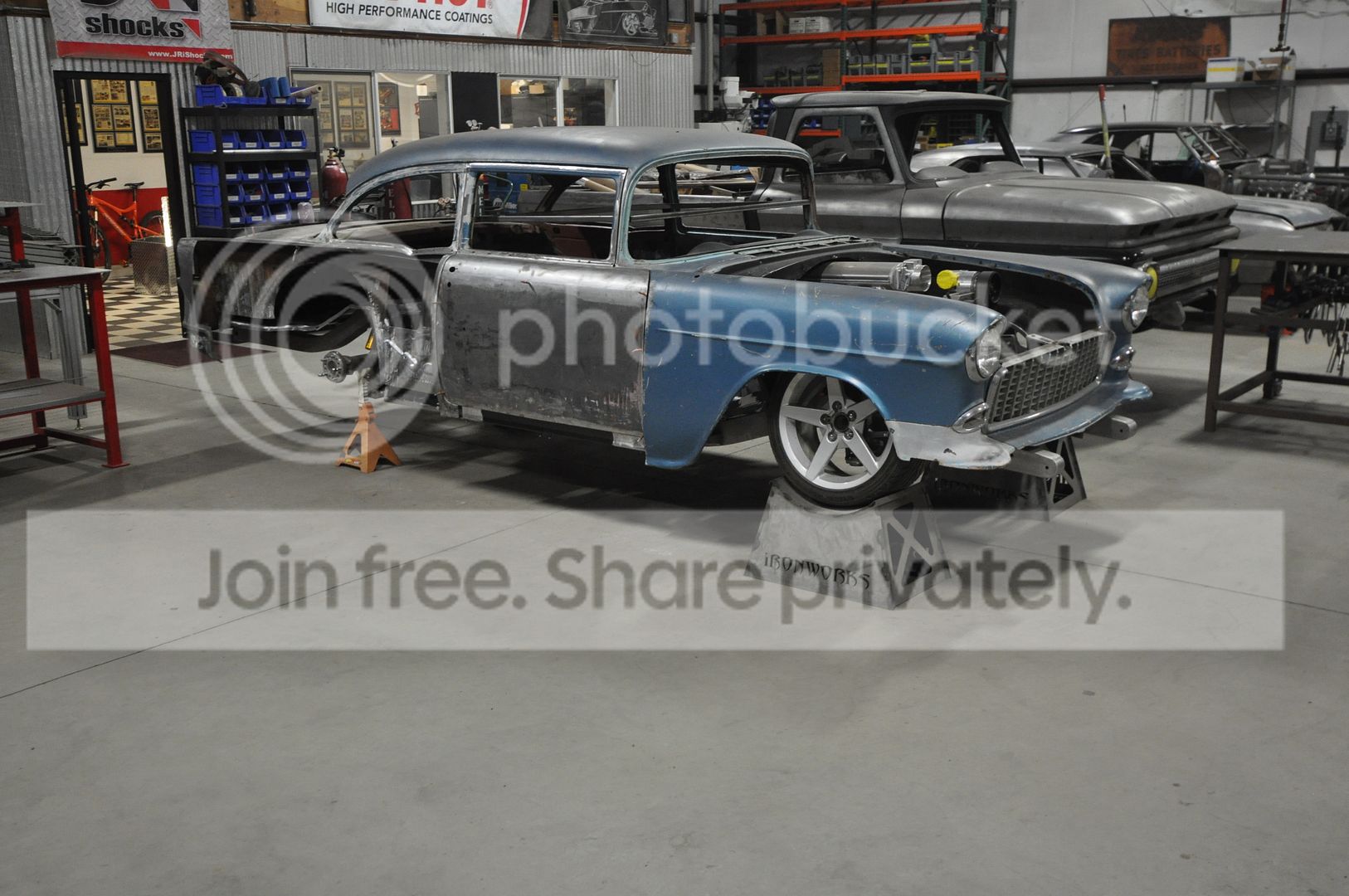 I'm pretty excited about a 55 Chevrolet project we are now doing with Fairway Chevrolet again. It will be a wedge section 55 Chevrolet post on one of our frames with some good past goodies bolted to the new LSX376-B15 crat engine. We hope it will make in the neighborhood of 8-900hp with an F-1 Procharger. Here is picture of what we started with. http://i616.photobucket.com/albums/t...hoppics001.jpg After a lot of cutting here is where we are now. http://i616.photobucket.com/albums/t...oppics2010.jpg http://i616.photobucket.com/albums/t...oppics2009.jpg You can see how much the unmodified fender hangs below the rocker. http://i616.photobucket.com/albums/t...15-2014018.jpg In these picture you can see the gap in the sheetmetal above the intake. http://i616.photobucket.com/albums/t...hoppics005.jpg After http://i616.photobucket.com/albums/t...oppics2013.jpg |