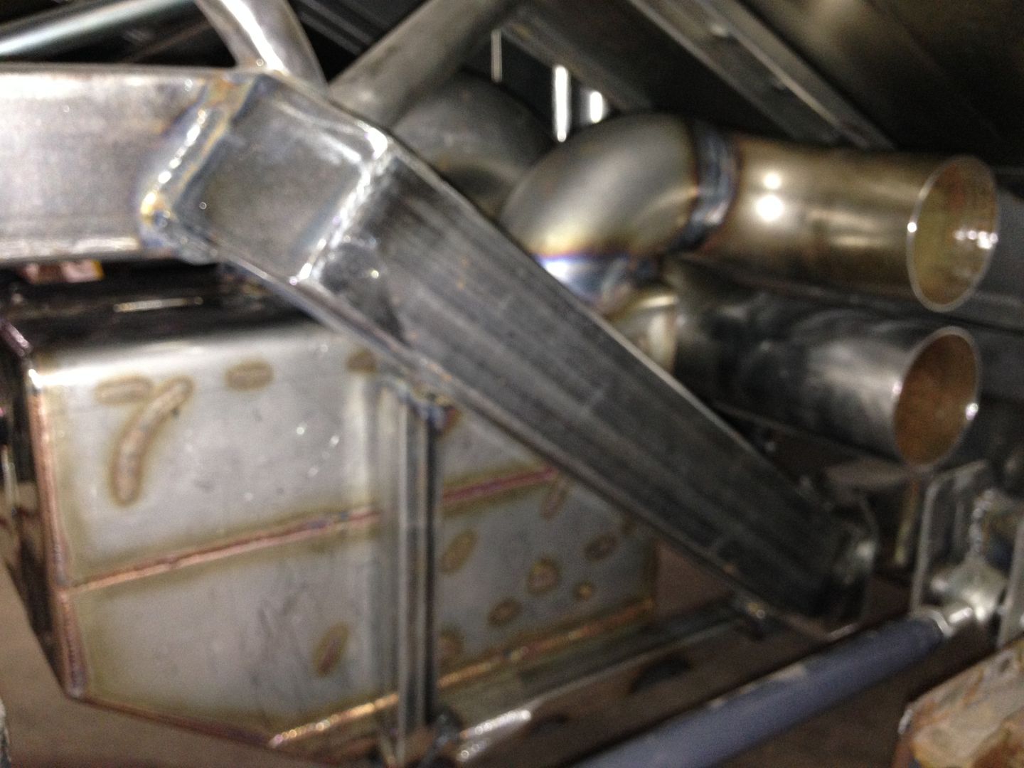 My custom mufflers came in from Spin Tech. 3.5 inlet and 3.5 outlet. Here is the tricky fab work from Pettigrew