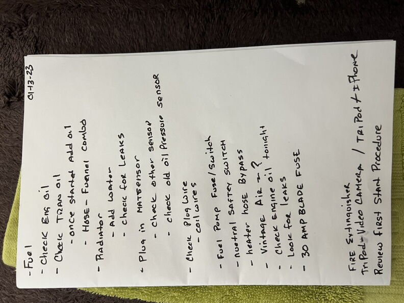 2nd Chance Start Up To Do List & Start Up 1st Attempt (( 01-14-23 ))