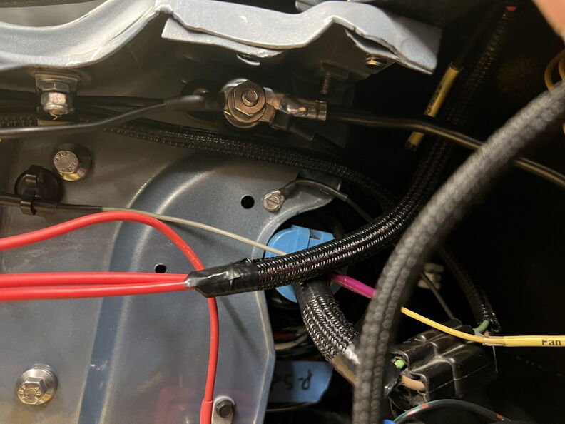 http://garagescene.net/_data/i/uploa...44f6933-me.jpg So apparently it is very important to not stack the 11.0 Loose Wire Ground so I am going to move it 2'" away from the ground stud. http://garagescene.net/_data/i/uploa...58e0ca3-me.jpg I moved the blue white wire to where the Holley Digital dash will be. http://garagescene.net/_data/i/uploa...bfe2ab6-me.jpg Apparently Remy decided it was nap time. http://garagescene.net/_data/i/uploa...6723be0-me.jpg Remember those DSE Top Post terminals apparently the positive one broke overnight. http://garagescene.net/_data/i/uploa...78fd592-me.jpg Going to plan "B" or is it "C" or is it "D" These have a little more beef however I am not sure if I like them cosmetically. http://garagescene.net/_data/i/uploa...29b2691-me.jpg So, well the issue seems to be resolved by moving the Loose wire ground and actually hooking up the Holley Main Ground. DA !!!!!!!! Yes, I actually forgot to install the main ground wire for the unit and yep I am an idiot. http://garagescene.net/_data/i/uploa...2ceaa07-me.jpg Test Ignition on and what do you know it actually works. http://garagescene.net/_data/i/uploa...99517fb-me.jpg Junking the DSE Terminals and trying these. http://garagescene.net/_data/i/uploa...71aeedc-me.jpg http://garagescene.net/_data/i/uploa...3d1baa9-me.jpg Moving on to the Loose Wire Ground and have I told you how much I love this drill. http://garagescene.net/_data/i/uploa...07594e7-me.jpg http://garagescene.net/_data/i/uploa...2728b4e-me.jpg I stripped all of the paint and coated with Dielectric grease. http://garagescene.net/_data/i/uploa...2c7267b-me.jpg http://garagescene.net/_data/i/uploa...9098552-me.jpg This is what happed to the hose clamp on the water pump heater core lines. Apparently I opened it up to much and the inside slider sleeve was pinched. So I am just going back to the old style stainless steel line clamps. On a side note these are almost impossible to see when they are in the car. http://garagescene.net/_data/i/uploa...f81f59f-me.jpg |