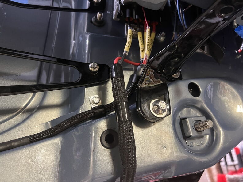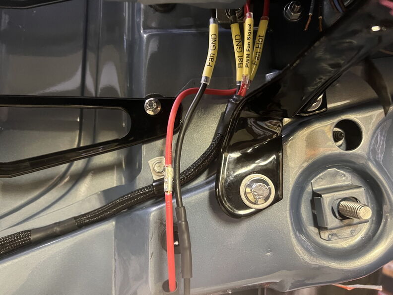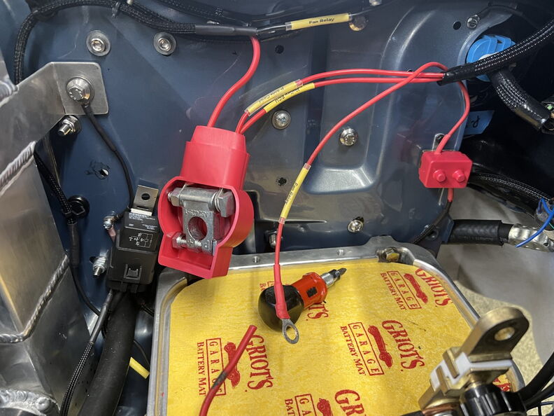 http://garagescene.net/_data/i/uploa...06a03df-me.jpg I used stainless steel self tapping screws to secure the Adel Clamps which I acquired on one of my trips to the local Napa Autoparts. http://garagescene.net/_data/i/uploa...152c063-me.jpg http://garagescene.net/_data/i/uploa...c822da9-me.jpg http://garagescene.net/_data/i/uploa...36a6457-me.jpg I had two area's that I wanted to add a little more protection so I wrapped this are in DEI EXO Sleeve and then wrapped it in black electrical tape to make it disappear. http://garagescene.net/_data/i/uploa...de520e9-me.jpg http://garagescene.net/_data/i/uploa...2989ab6-me.jpg http://garagescene.net/_data/i/uploa...846f5c5-me.jpg There is actually more clearance here then it looks like. http://garagescene.net/_data/i/uploa...de451ce-me.jpg I love these connectors http://garagescene.net/_data/i/uploa...2e24602-me.jpg I staggered these so I didn't have a bulky section in the wire loom. http://garagescene.net/_data/i/uploa...b1e75c2-me.jpg Fan is connected and if you look closely in the 2nd pictures you can see my new attic ladder which allows me to get to all of the parts for the car. http://garagescene.net/_data/i/uploa...544ca1e-me.jpg http://garagescene.net/_data/i/uploa...9296f81-me.jpg http://garagescene.net/_data/i/uploa...5cbf7df-me.jpg I still have to remove the Painless Performance relay and make the final battery connections. Which I plan to do tomorrow. |