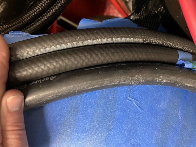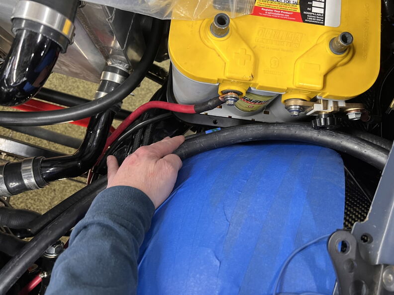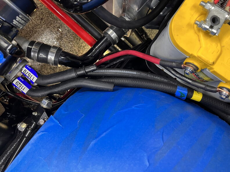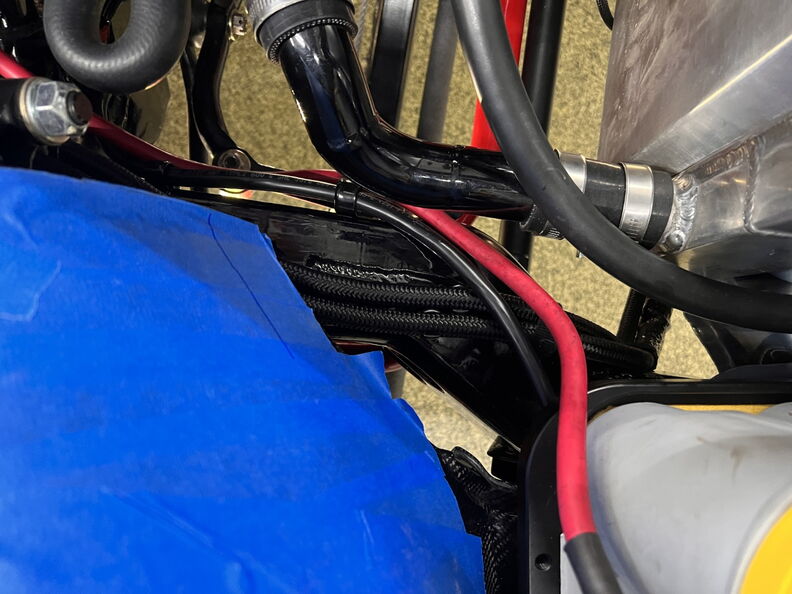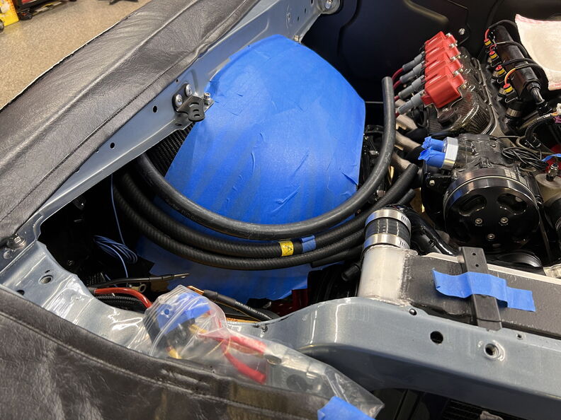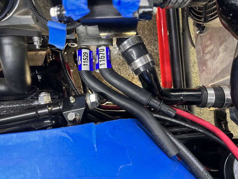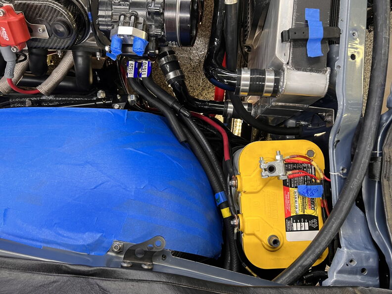 http://garagescene.net/_data/i/uploa...400b2a2-me.jpg First up I am finally securing the heaters hose in the inner fender. http://garagescene.net/_data/i/uploa...c5cda49-me.jpg http://garagescene.net/_data/i/uploa...56d3037-me.jpg http://garagescene.net/_data/i/uploa...c682c0e-me.jpg Close up view http://garagescene.net/_data/i/uploa...6140085-me.jpg More needed parts from ICT Billet http://garagescene.net/_data/i/uploa...8cc7054-me.jpg http://garagescene.net/_data/i/uploa...e1349c2-me.jpg Now that I have all the pieces I need to make the connection I just need the balls to cut the hoses. http://garagescene.net/_data/i/uploa...6840edc-me.jpg Well I couldn't do it so I moved on to the battery ground wire that is now neatly tucked under the battery tray. http://garagescene.net/_data/i/uploa...c5a7f7f-me.jpg http://garagescene.net/_data/i/uploa...7e360b9-me.jpg With the battery wire sitting so close to the lower radiator hose I decided to wrap it in DEI Heat Wrap. http://garagescene.net/_data/i/uploa...baecb98-me.jpg http://garagescene.net/_data/i/uploa...43c21a4-me.jpg Eak look like he wants to call it a night. http://garagescene.net/_data/i/uploa...53ffb12-me.jpg |