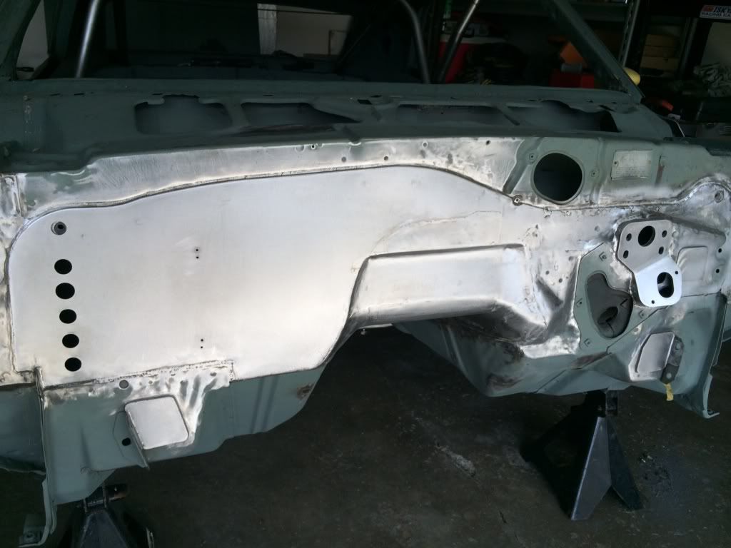 Brown truck dropped these off. http://i1232.photobucket.com/albums/...psd957ef1c.jpg Got firewall done " again " minus a few holes. AC fits in perfect. Clutch bracket is set. Cut trans cross member a bit. Looking for a good entry location for engine harness and battery cable. Put it all back together to double check clearances.http://i1232.photobucket.com/albums/...ps67c70553.jpg |