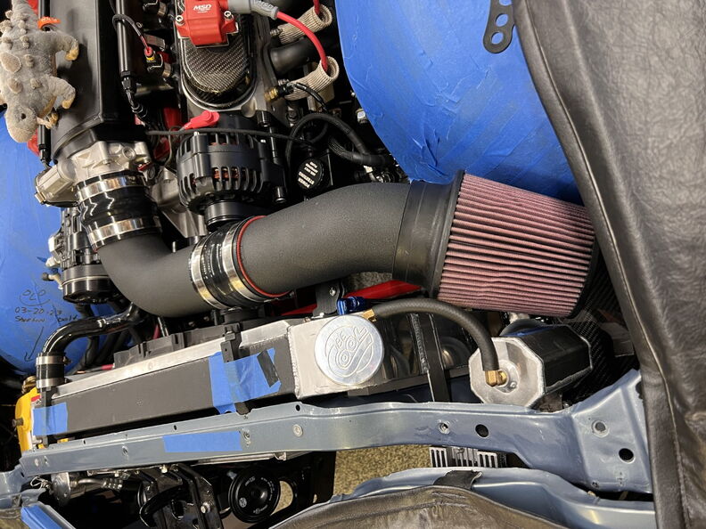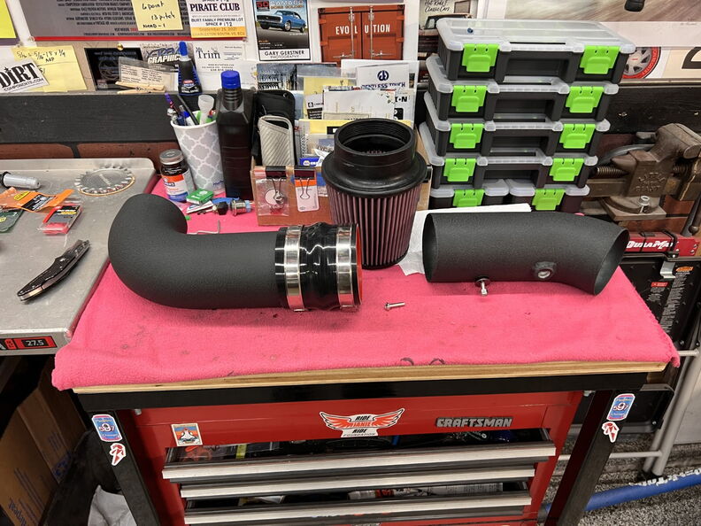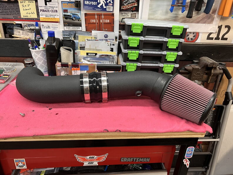 http://garagescene.net/_data/i/uploa...c7e0a5e-me.jpg The intake tubes are coated so it's time to install them. http://garagescene.net/_data/i/uploa...4eea707-me.jpg Bracket has been removed and for now it's getting rattle canned with Wrinkle Black. Over the winter I will have the fan shroud and bracket powdered to match the Intake tube. http://garagescene.net/_data/i/uploa...097621b-me.jpg http://garagescene.net/_data/i/uploa...115f69a-me.jpg http://garagescene.net/_data/i/uploa...1fa39da-me.jpg It's getting closer http://garagescene.net/_data/i/uploa...048a4af-me.jpg http://garagescene.net/_data/i/uploa...fff61ac-me.jpg I can't believe the stud lines up perfectly with the bracket. http://garagescene.net/_data/i/uploa...d65345c-me.jpg Heading to Ace Hardware to get a USS Nut ( these are very thin nuts ) http://garagescene.net/_data/i/uploa...c6d604d-me.jpg Final Assembly Time http://garagescene.net/_data/i/uploa...86dec04-me.jpg http://garagescene.net/_data/i/uploa...6d89646-me.jpg While I am here I might as well install the MAF Sensor. http://garagescene.net/_data/i/uploa...540b1ed-me.jpg http://garagescene.net/_data/i/uploa...81c36cc-me.jpg I also installed two High Density Urethane washers to help reduce vibration and I will be using a Nylock nut to retain this bolt.. http://garagescene.net/_data/i/uploa...5600cca-me.jpg Looks like things are lined up nicely. http://garagescene.net/_data/i/uploa...9e66616-me.jpg So Close !!! I can't seem to find the hose clamp for the filter and the best Amazon can do is tomorrow. http://garagescene.net/_data/i/uploa...791f71d-me.jpg http://garagescene.net/_data/i/uploa...058fe55-me.jpg http://garagescene.net/_data/i/uploa...a5679cf-me.jpg |