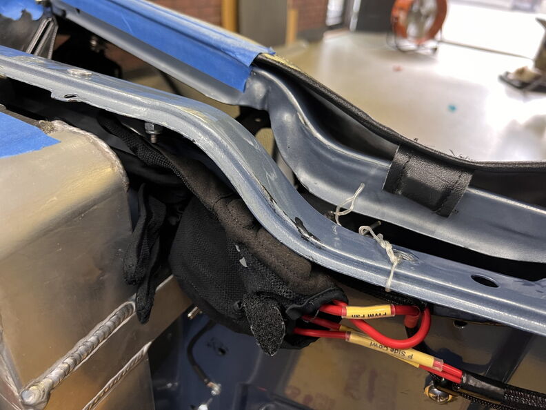 http://garagescene.net/_data/i/uploa...f0edea4-me.jpg So, it's time to remove the mock up battery and install the really Optima Red Top. http://garagescene.net/_data/i/uploa...5a2916f-me.jpg Well we have a small issue. I am using a grade 8 Zinc coated bolt and washer and the washer is slightly larger then the bolt which is interfering with the hold down bracket. So, the bolt is coming out and I am going to file a flat spot in the washer and attempt to line it up with the bolt head. Which will give me just enough space to clear the bracket. http://garagescene.net/_data/i/uploa...e463c1b-me.jpg I found another use for my mountain bike gloves. http://garagescene.net/_data/i/uploa...39eb3e9-me.jpg http://garagescene.net/_data/i/uploa...d813adf-me.jpg http://garagescene.net/_data/i/uploa...000e8e1-me.jpg Filed down and almost ready to go. http://garagescene.net/_data/i/uploa...7dc55e8-me.jpg I increased the diameter of the inside of the washer so it would sit perfectly flat. http://garagescene.net/_data/i/uploa...8914b3e-me.jpg Just a little more please http://garagescene.net/_data/i/uploa...8adcedd-me.jpg This was fun...not !!! http://garagescene.net/_data/i/uploa...88b7351-me.jpg Nope, the washer rotated so I need to do it again. This time around I started with the washer flat spot a little further back (counter clockwise) so when the bolt contacted the washer it would move in sync with the bolt head. It took a couple try's to line up the flat spot with the nut on each bolt. http://garagescene.net/_data/i/uploa...9fd45dc-me.jpg http://garagescene.net/_data/i/uploa...57a6e6e-me.jpg More ARP bolts for the top of the battery tray. http://garagescene.net/_data/i/uploa...1355dc9-me.jpg In order to tighten the bolts I had to move the Vintage Air hoses. http://garagescene.net/_data/i/uploa...b412222-me.jpg Some of the blue tape it is finally coming of. http://garagescene.net/_data/i/uploa...1660de8-me.jpg http://garagescene.net/_data/i/uploa...2691125-me.jpg http://garagescene.net/_data/i/uploa...60722b4-me.jpg http://garagescene.net/_data/i/uploa...5df27ec-me.jpg One more reminder. I need to shorten one of the inner fender bolts as it is way to close to one of the vintage air hoses. http://garagescene.net/_data/i/uploa...0613389-me.jpg |