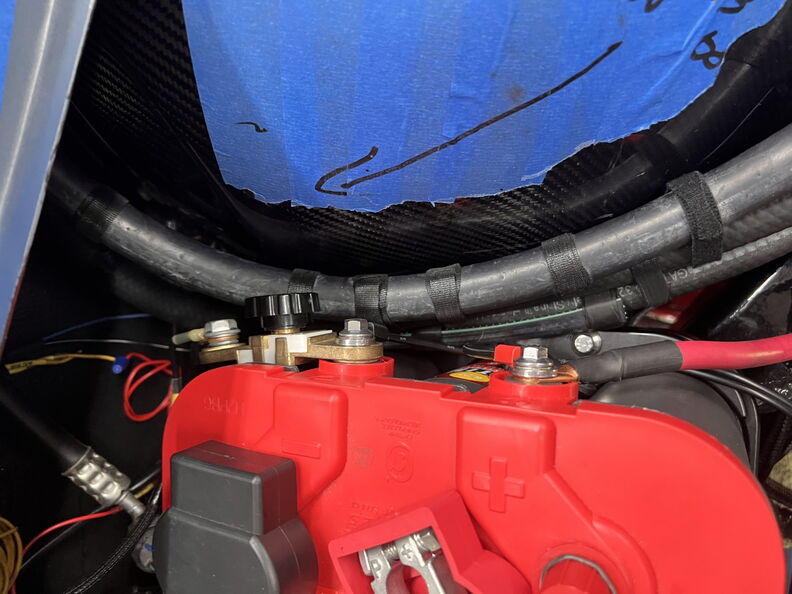 Time to secure the hoses together and hopefully prevent them from chaffing on the battery tray.