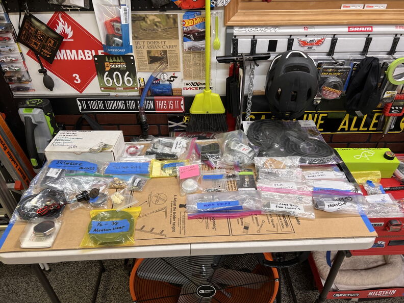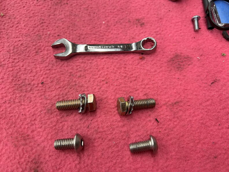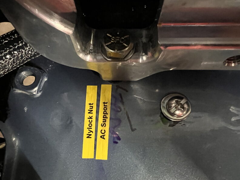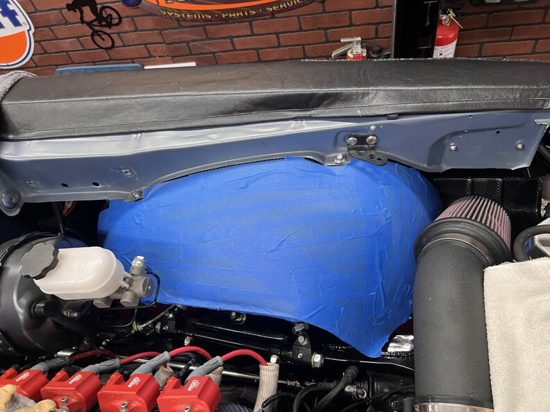 http://garagescene.net/_data/i/uploa...82e8d9e-me.jpg This is the hardware I will be using on the battery hold down brackets and I will be using star washers on all of the bolts. http://garagescene.net/_data/i/uploa...438a92e-me.jpg I need to swap out the bolt circled in red as it will be supporting the AC line. http://garagescene.net/_data/i/uploa...301e65a-me.jpg Enlarging the holes so I don't have to go to Home Depot !!! http://garagescene.net/_data/i/uploa...011f9c5-me.jpg Test Fitting http://garagescene.net/_data/i/uploa...15fb079-me.jpg AC Hose secured. http://garagescene.net/_data/i/uploa...49001ea-me.jpg The area circled in red was bent into the engine compartment and it sure did look like it was going to eventually cut through the ground wire. So I gently bent it flat and added some black touch paint. http://garagescene.net/_data/i/uploa...f2650bc-me.jpg I also put a note reminding me that there is a Nylock nut on the other side. http://garagescene.net/_data/i/uploa...42cc3e3-me.jpg I ended up going Hi-Vis http://garagescene.net/_data/i/uploa...a7989a8-me.jpg More star washers and I also confirmed that the longer bolts would not poke through the bottom of the battery tray. http://garagescene.net/_data/i/uploa...ec12a96-me.jpg http://garagescene.net/_data/i/uploa...555fe1b-me.jpg I installed the bracket and tightened prior to installing the battery. http://garagescene.net/_data/i/uploa...6a8893c-me.jpg I really hope this is the last time I have to lift this battery. http://garagescene.net/_data/i/uploa...7ad8c0a-me.jpg Ugh, I need to remove a little bit of plastic. http://garagescene.net/_data/i/uploa...6b5b07e-me.jpg Thankfully the utility knife worked. http://garagescene.net/_data/i/uploa...8d88781-me.jpg It's in !!!! http://garagescene.net/_data/i/uploa...78b8f69-me.jpg http://garagescene.net/_data/i/uploa...41f5f3d-me.jpg and it' off http://garagescene.net/_data/i/uploa...a59bd23-me.jpg Vintage Air lines secured and it looks so much better. http://garagescene.net/_data/i/uploa...55823d8-me.jpg |