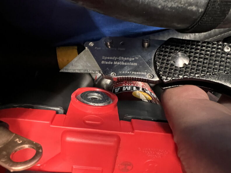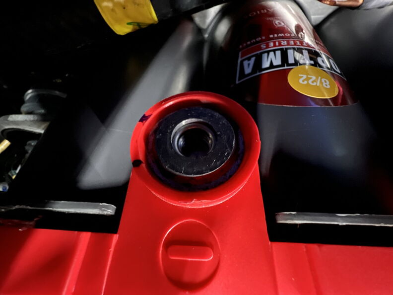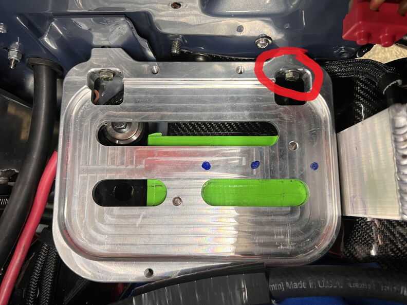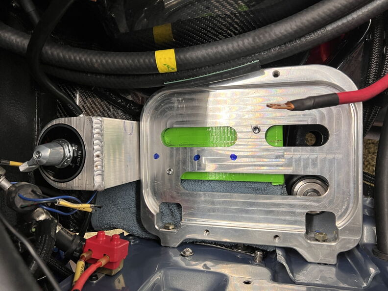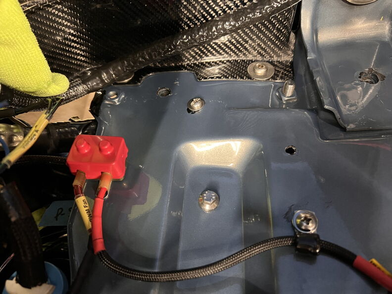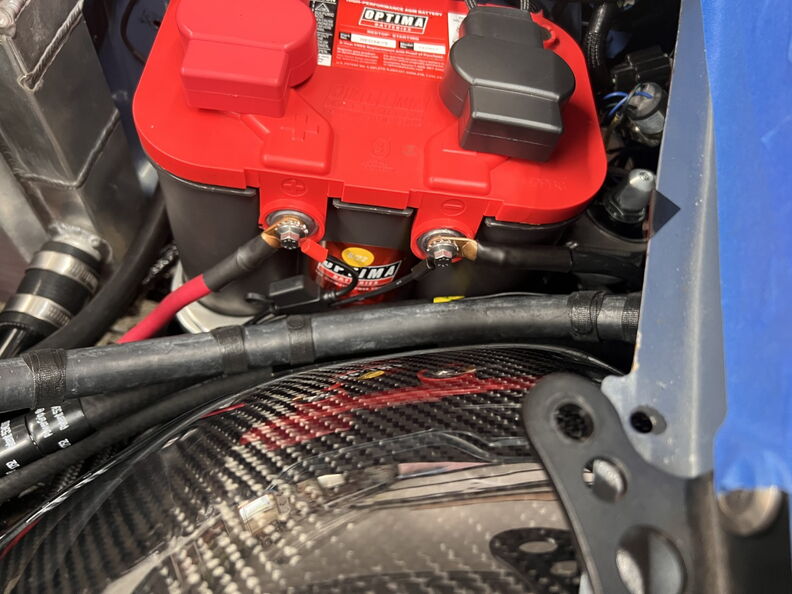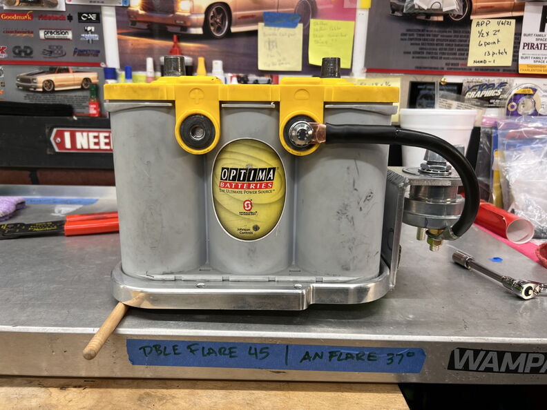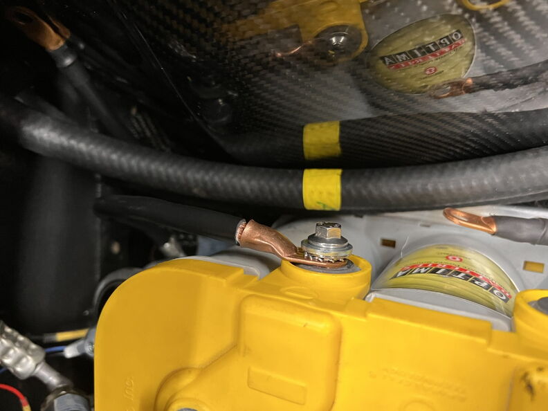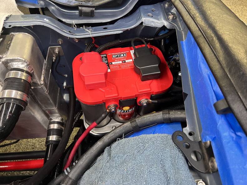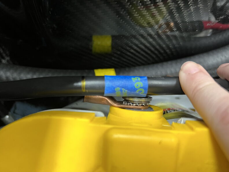 http://garagescene.net/_data/i/uploa...f69676e-me.jpg While the mock up battery was in the car I estimated the cut length of the cable. http://garagescene.net/_data/i/uploa...8cece2b-me.jpg Looks good http://garagescene.net/_data/i/uploa...11daae0-me.jpg This was the point when I should have swapped to the Black Anodized tray. http://garagescene.net/_data/i/uploa...be411a8-me.jpg Confirming http://garagescene.net/_data/i/uploa...238e6c7-me.jpg Crimping with my helper. http://garagescene.net/_data/i/uploa...374b9bb-me.jpg Heat Shrunk cable end. http://garagescene.net/_data/i/uploa...0f3ec79-me.jpg Confirming the gap. http://garagescene.net/_data/i/uploa...bc067e9-me.jpg I enlarged the holes to allow some wiggle room. http://garagescene.net/_data/i/uploa...562c42a-me.jpg Time to make some battery bolts. You can see that I used a shouldered nut and grimmped that in the vice and then I installed the bolt and tightened it. At this point I can cut the bolt and not damage the visible nut. http://garagescene.net/_data/i/uploa...675074c-me.jpg http://garagescene.net/_data/i/uploa...9982b46-me.jpg I also shortened the acorn nut to it didn't poke into the bottom of the battery case. http://garagescene.net/_data/i/uploa...cd7c37c-me.jpg Since the negative cable is close to these two nuts I swapped them out. http://garagescene.net/_data/i/uploa...d0f11a4-me.jpg Much better looking and of course they won't damage the ground wire. http://garagescene.net/_data/i/uploa...dae2984-me.jpg If you look at the ground wire you can see I wrapped it in DEI Abrasion wrap. http://garagescene.net/_data/i/uploa...484e2cf-me.jpg http://garagescene.net/_data/i/uploa...fc25b76-me.jpg Tray is in. http://garagescene.net/_data/i/uploa...d5b9b33-me.jpg Support Rod is in. http://garagescene.net/_data/i/uploa...1a325c8-me.jpg |