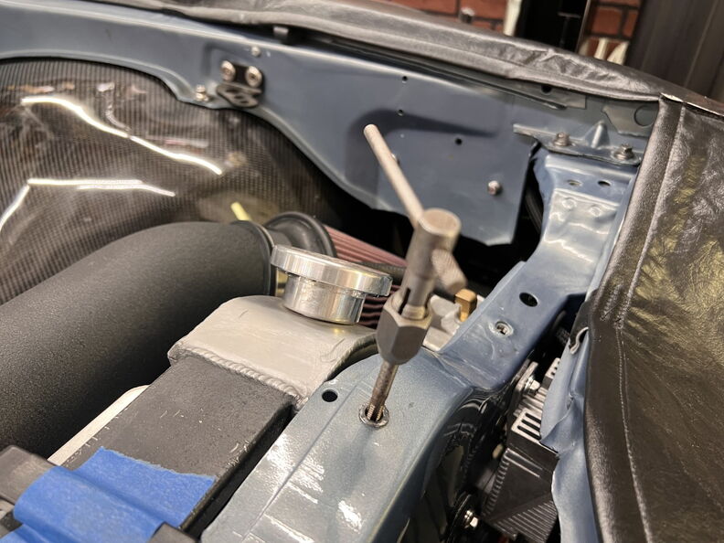 http://garagescene.net/_data/i/uploa...ae21fee-me.jpg Tape is on & off again http://garagescene.net/_data/i/uploa...8bb6002-me.jpg Charge plug is back on. http://garagescene.net/_data/i/uploa...e091db5-me.jpg Time to remove the blue tape from the Anvil Inner Fender http://garagescene.net/_data/i/uploa...e730bdb-me.jpg I had to remove the air filter so I could get the rest of the tape off. http://garagescene.net/_data/i/uploa...801c0ab-me.jpg http://garagescene.net/_data/i/uploa...bbb2539-me.jpg I need to modify the little rubber things that go under the Anvil Radiator cover. http://garagescene.net/_data/i/uploa...bafe817-me.jpg http://garagescene.net/_data/i/uploa...0e573bf-me.jpg http://garagescene.net/_data/i/uploa...6d8aa79-me.jpg Ugh, the nutzert that I installed started spinning so I had to tighten it up again. http://garagescene.net/_data/i/uploa...ad565db-me.jpg Anvil Radiator cover installed and I can't wait to see the Anvil Core Support cover installed. http://garagescene.net/_data/i/uploa...d0b2107-me.jpg I needed to clean out the threads on the factory blind nuts http://garagescene.net/_data/i/uploa...88adefb-me.jpg |