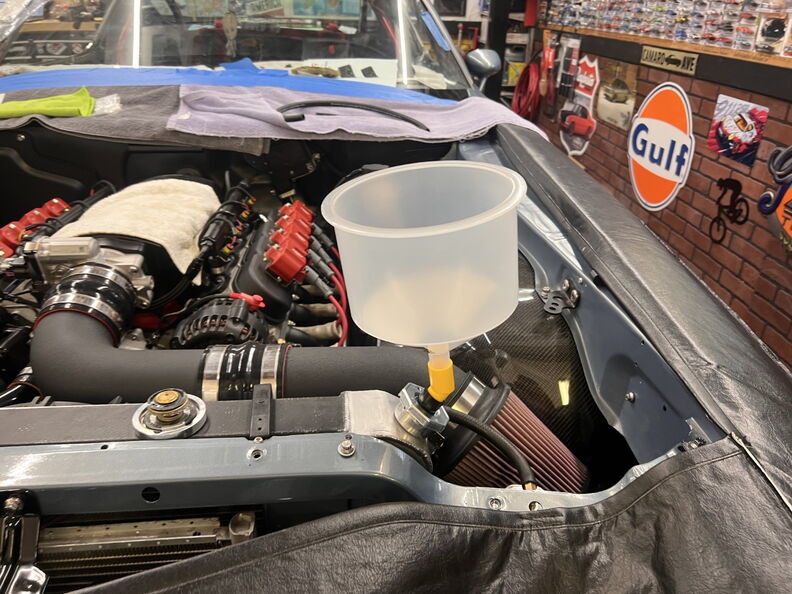 http://garagescene.net/_data/i/uploa...f35a876-me.jpg http://garagescene.net/_data/i/uploa...c1c83c1-me.jpg Andrew was kind enough to log back into my car and tweak the tune just a little bit. He confirmed my PWM fan connection to the Holley worked and we figured out that my thermostat wasn't opening. We also assumed that there was still air in the cool heads and he sent me out to get the Funnel fill set up. http://garagescene.net/_data/i/uploa...dac8a51-me.jpg |