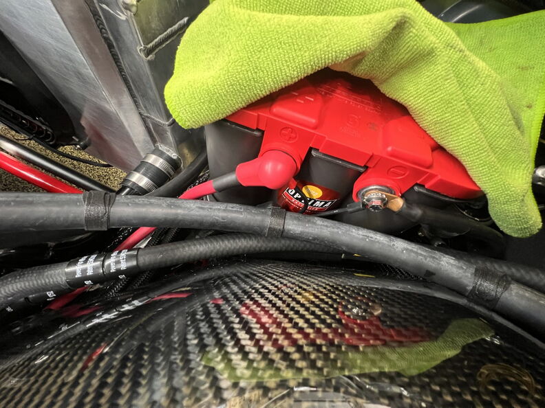 So the optima battery is back and it is fully charged. I dropped it off at my buddy's shop so he could use the big Optima