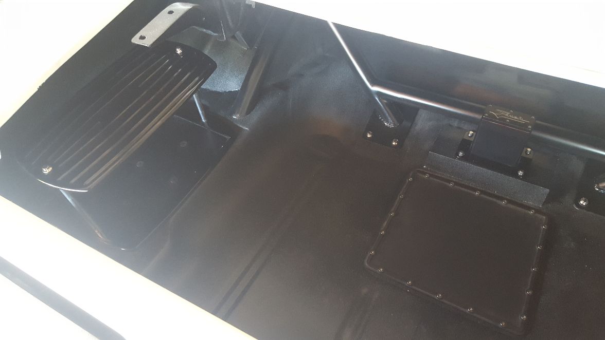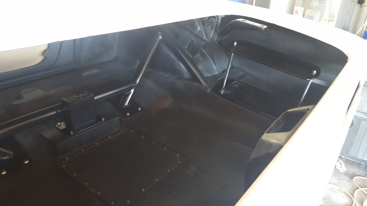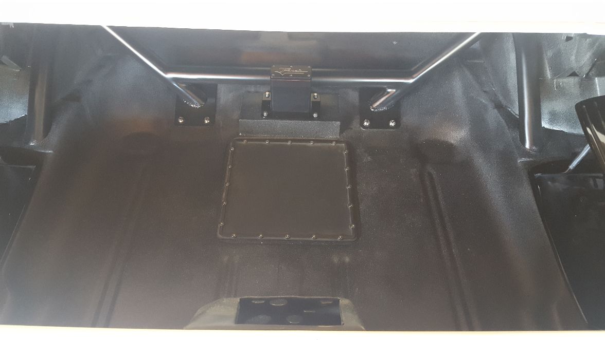 Also got most of the work done in the trunk area also. It's kind of dusty and the black/grey spatter spray shows a much better contrast from the satin black roll bars in real life. I will be using roll bar mounts from Wehrs Machine to mount the JRI reservoirs in the trunk.