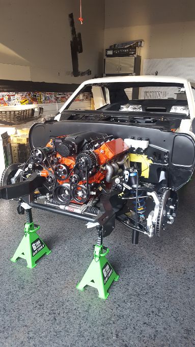Those are some crazy headers to fit that Speedtech frame rail, lookin great!
